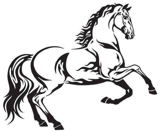 Конь черно белый рисунок