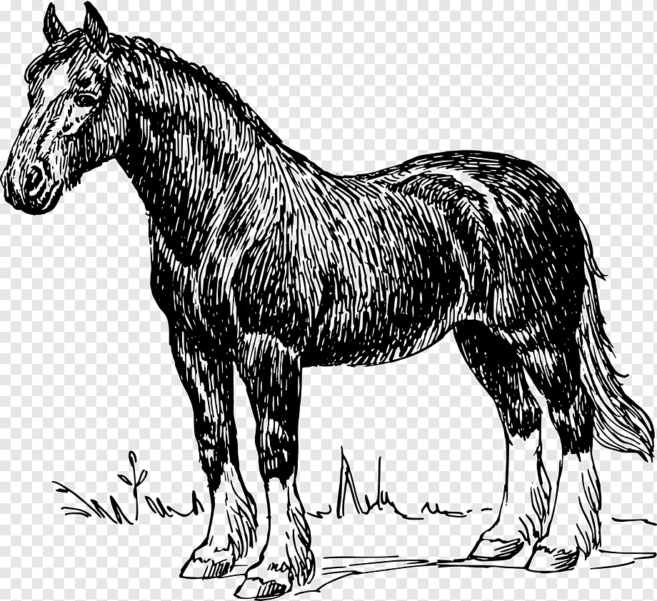 ![Конь черно белый рисунок]()