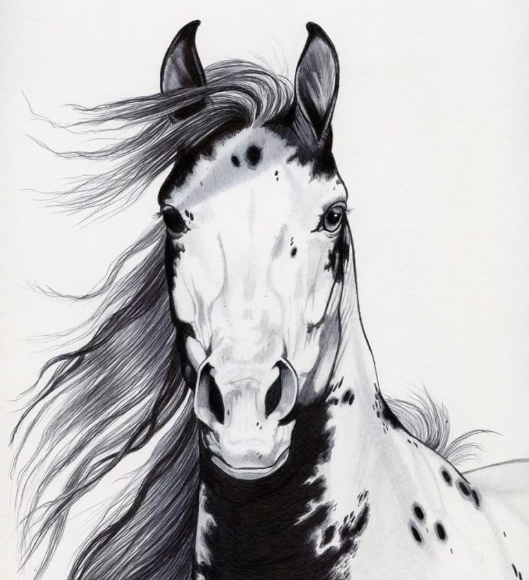 Конь рисунок чб