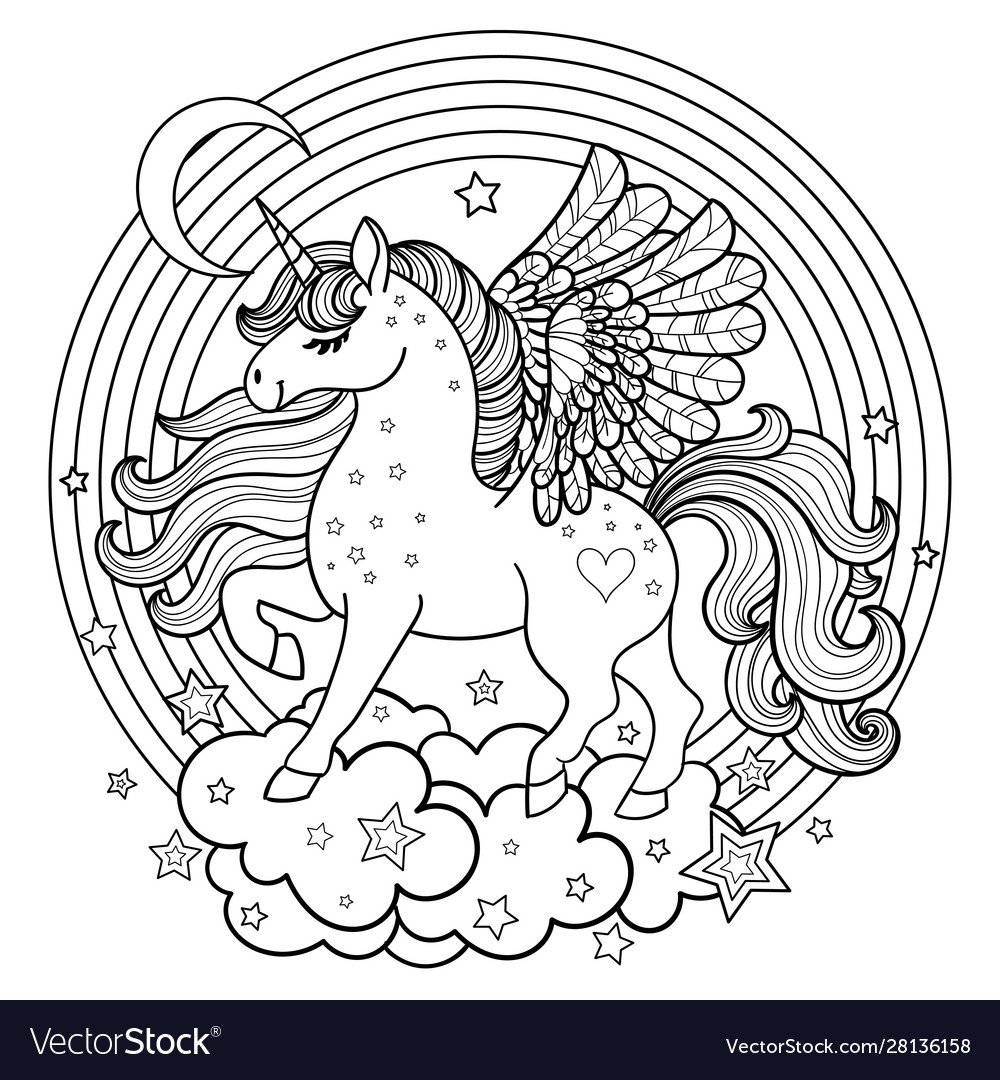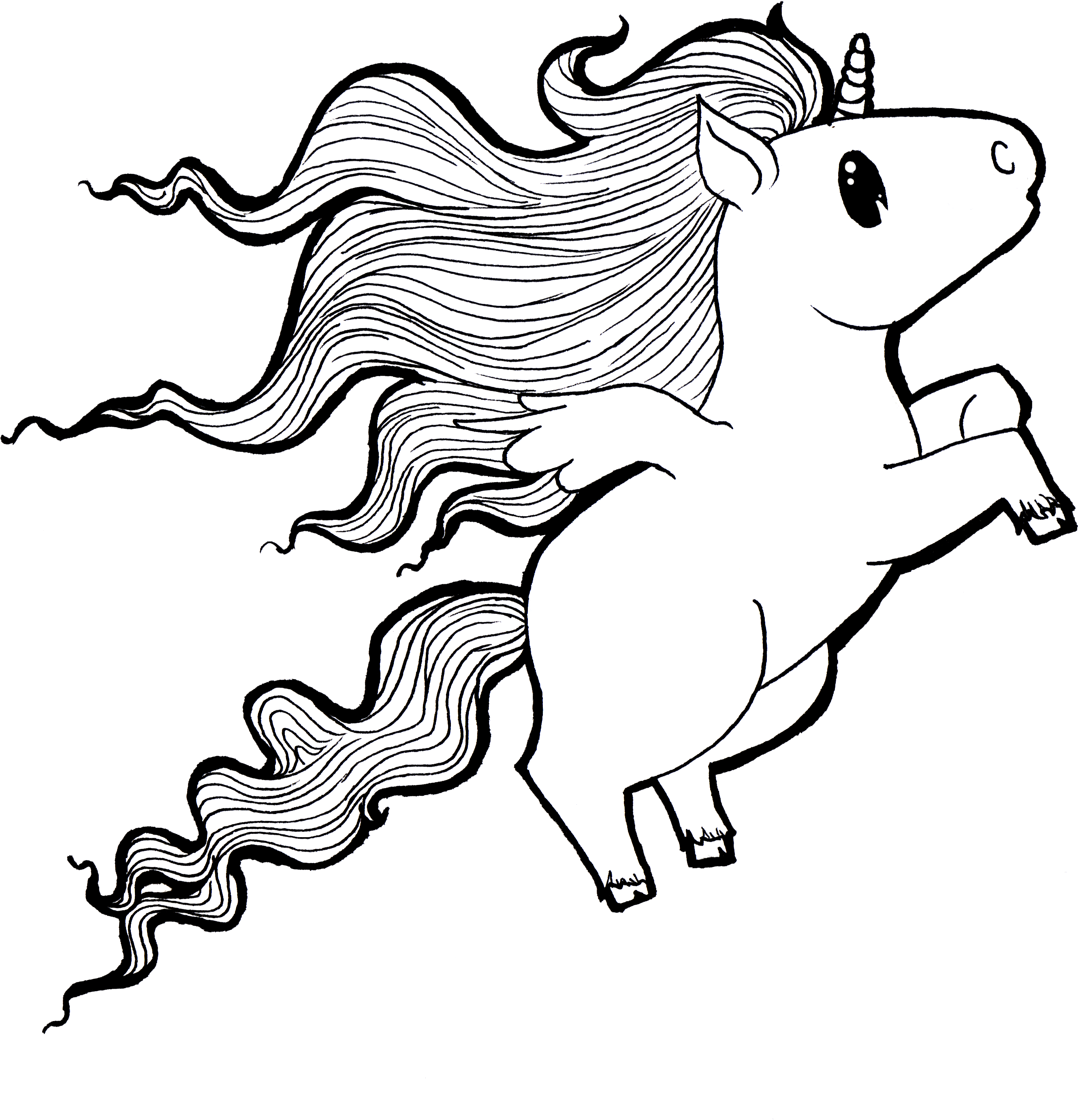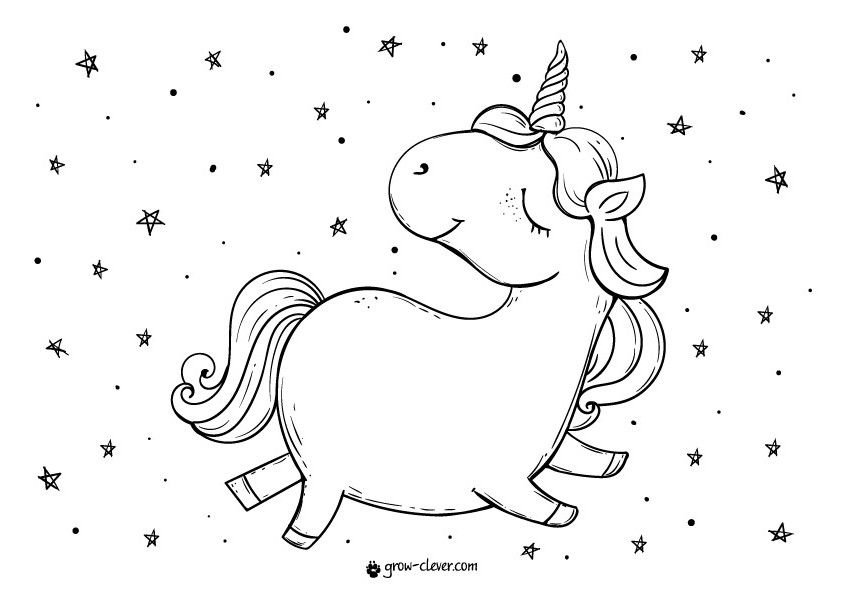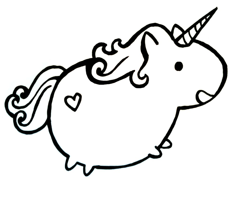 ![Единорог мультяшный черно белый]()