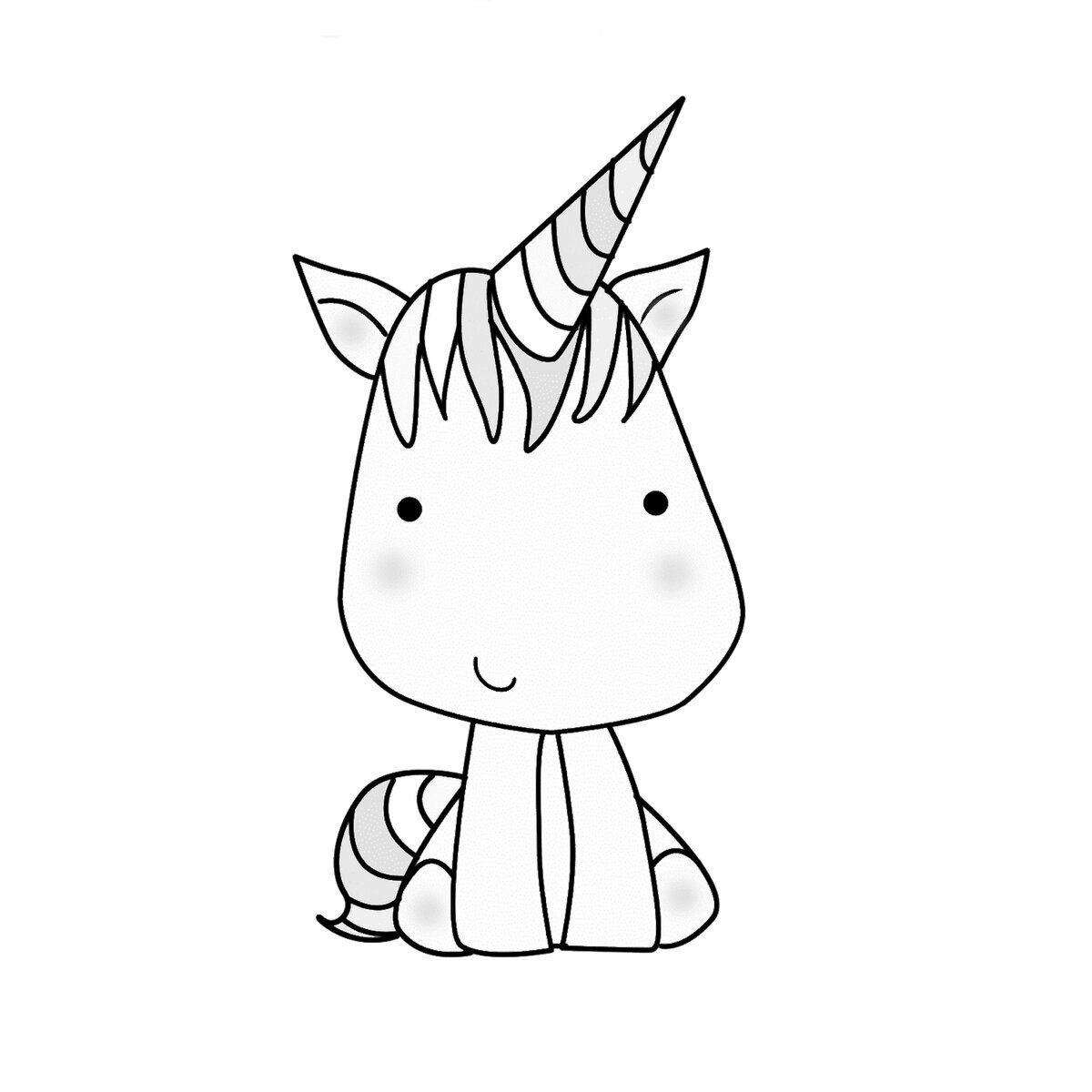 Единорог мультяшный черно белый