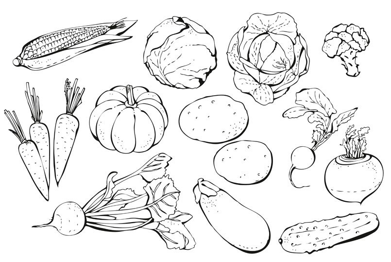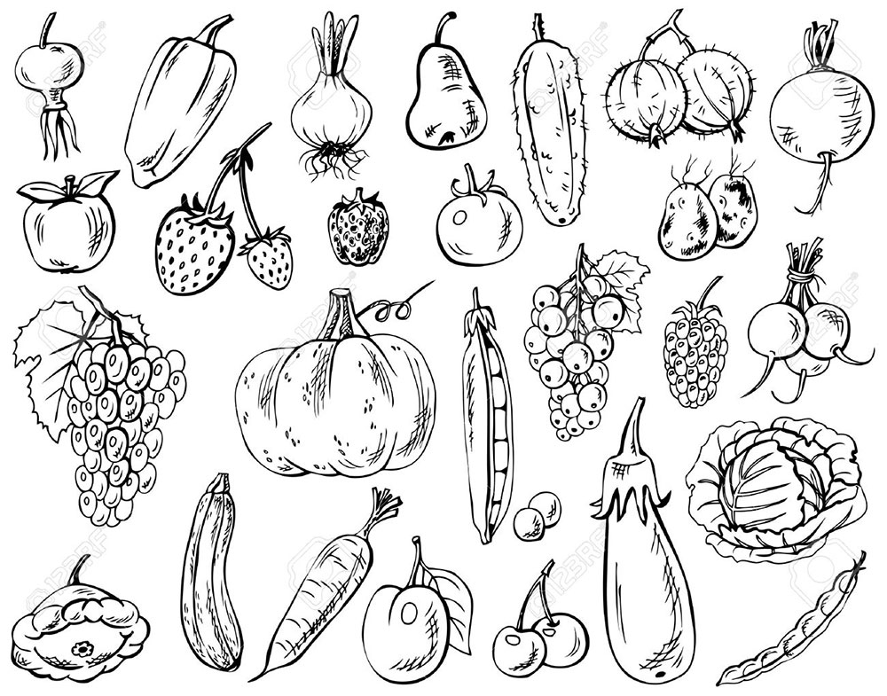 ![Овощи скетч]()