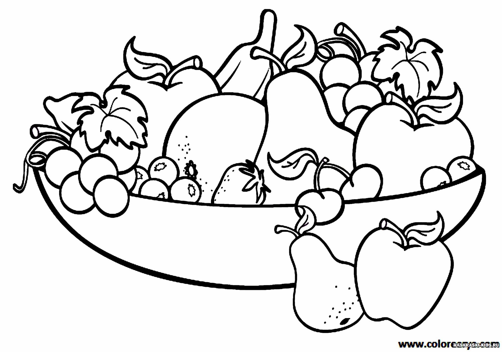 Овощи и фрукты раскраска для детей