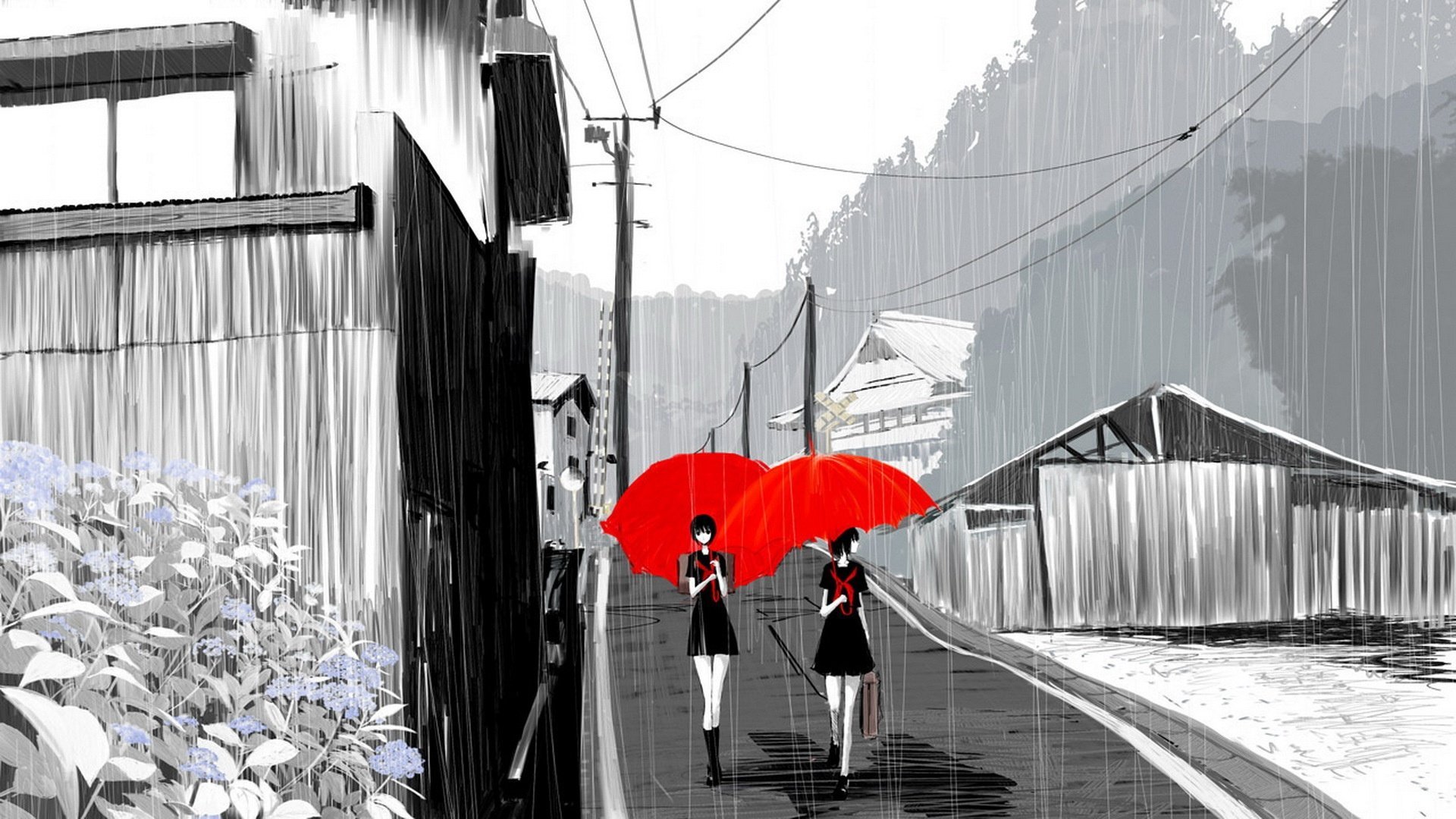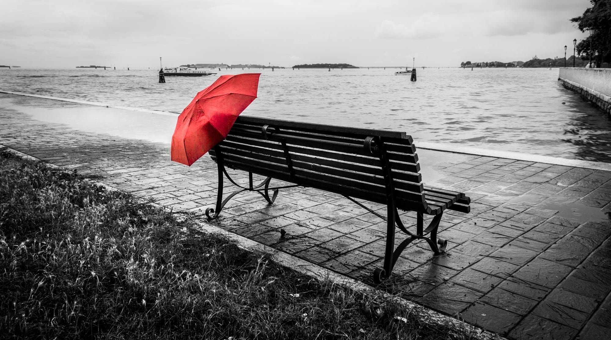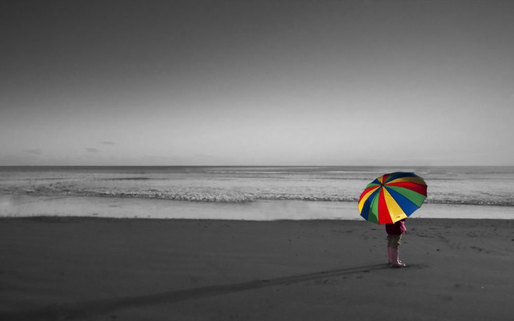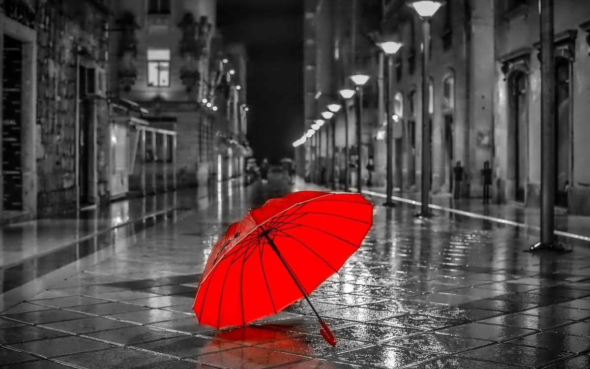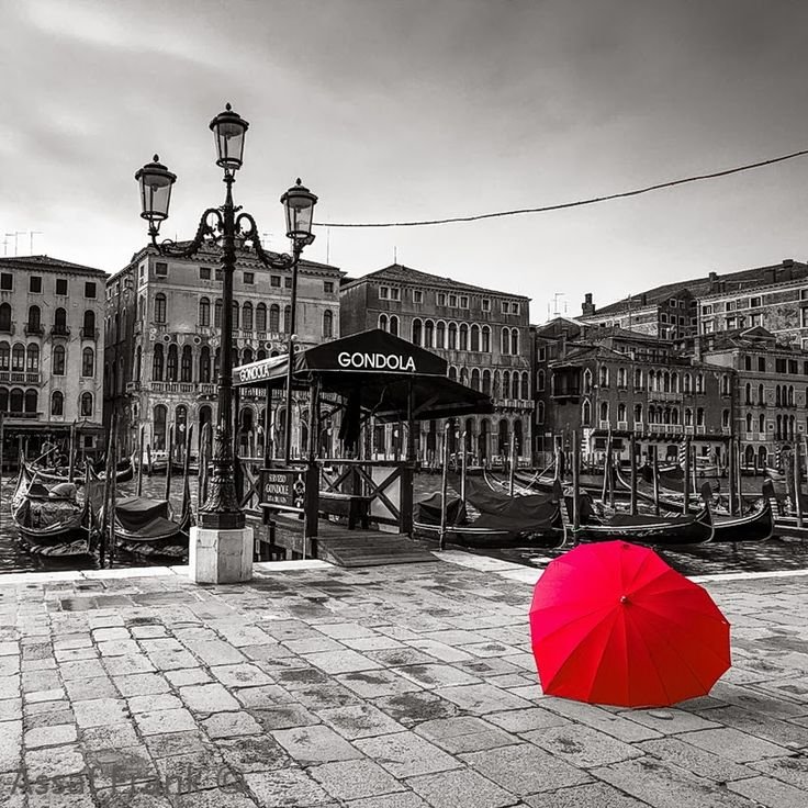 ![Черно белое с красным зонтом]()