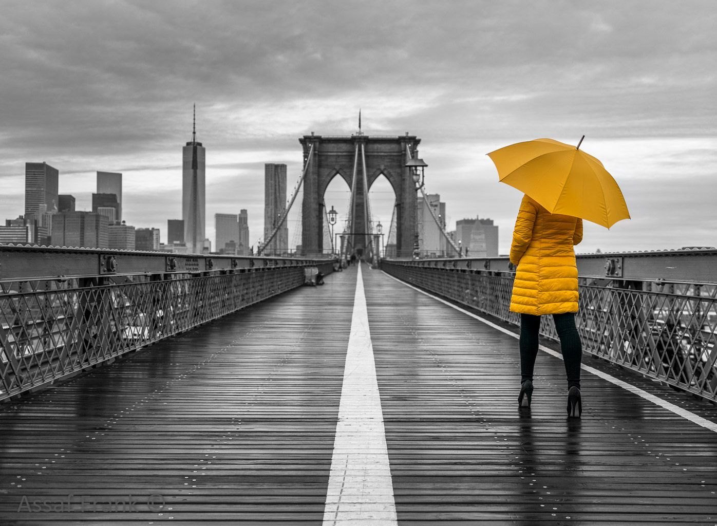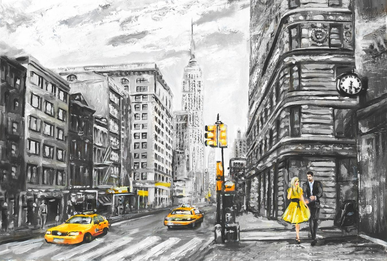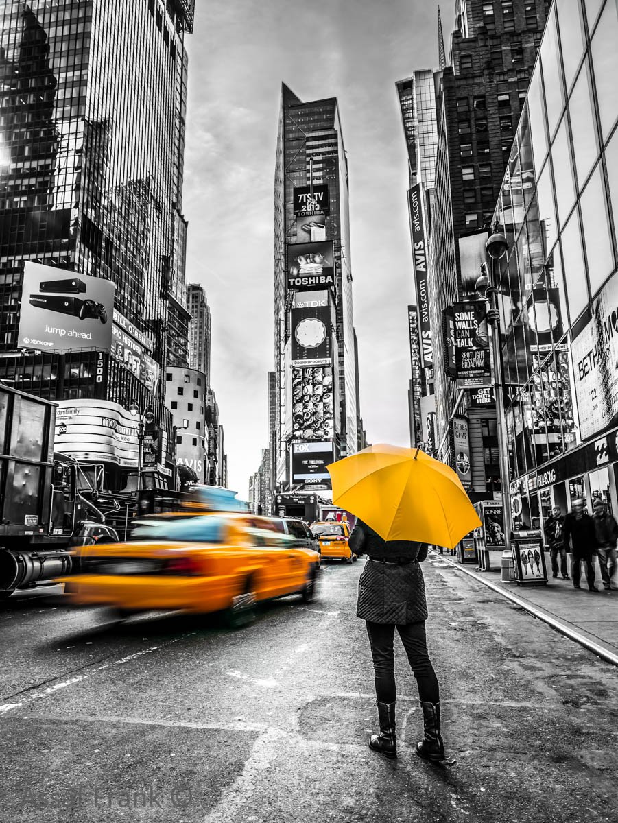 Черно белый город с желтым акцентом