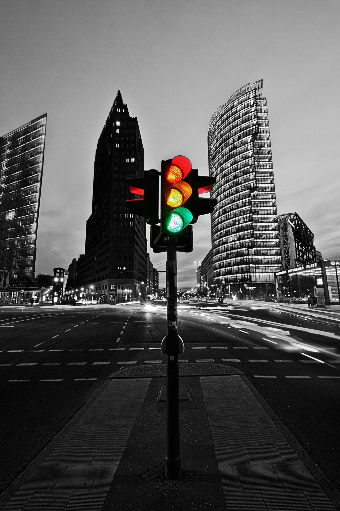 ![Черно белый город с желтым акцентом]()
