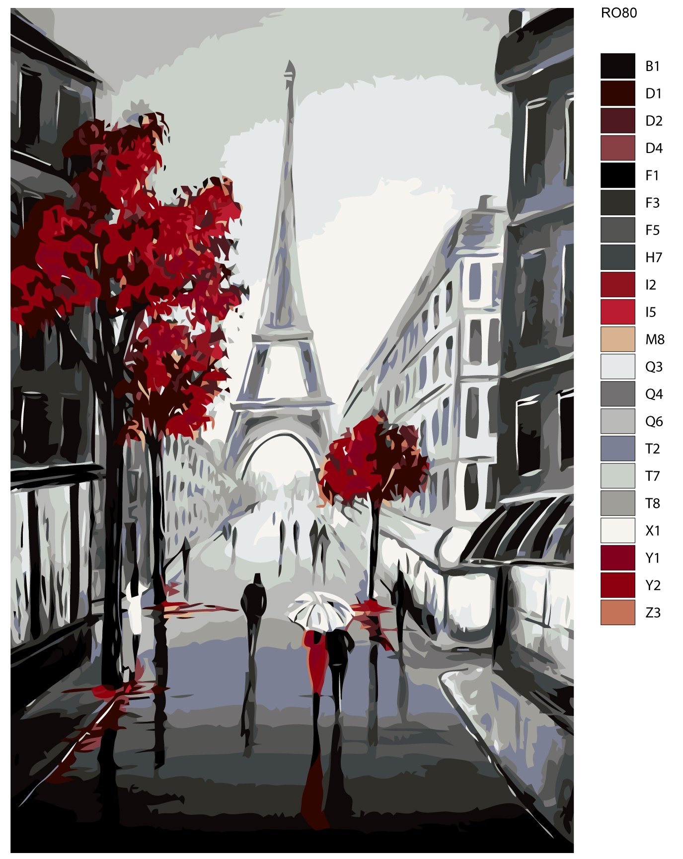 ![Картина по номерам с зонтиками Эйфелева башня]()