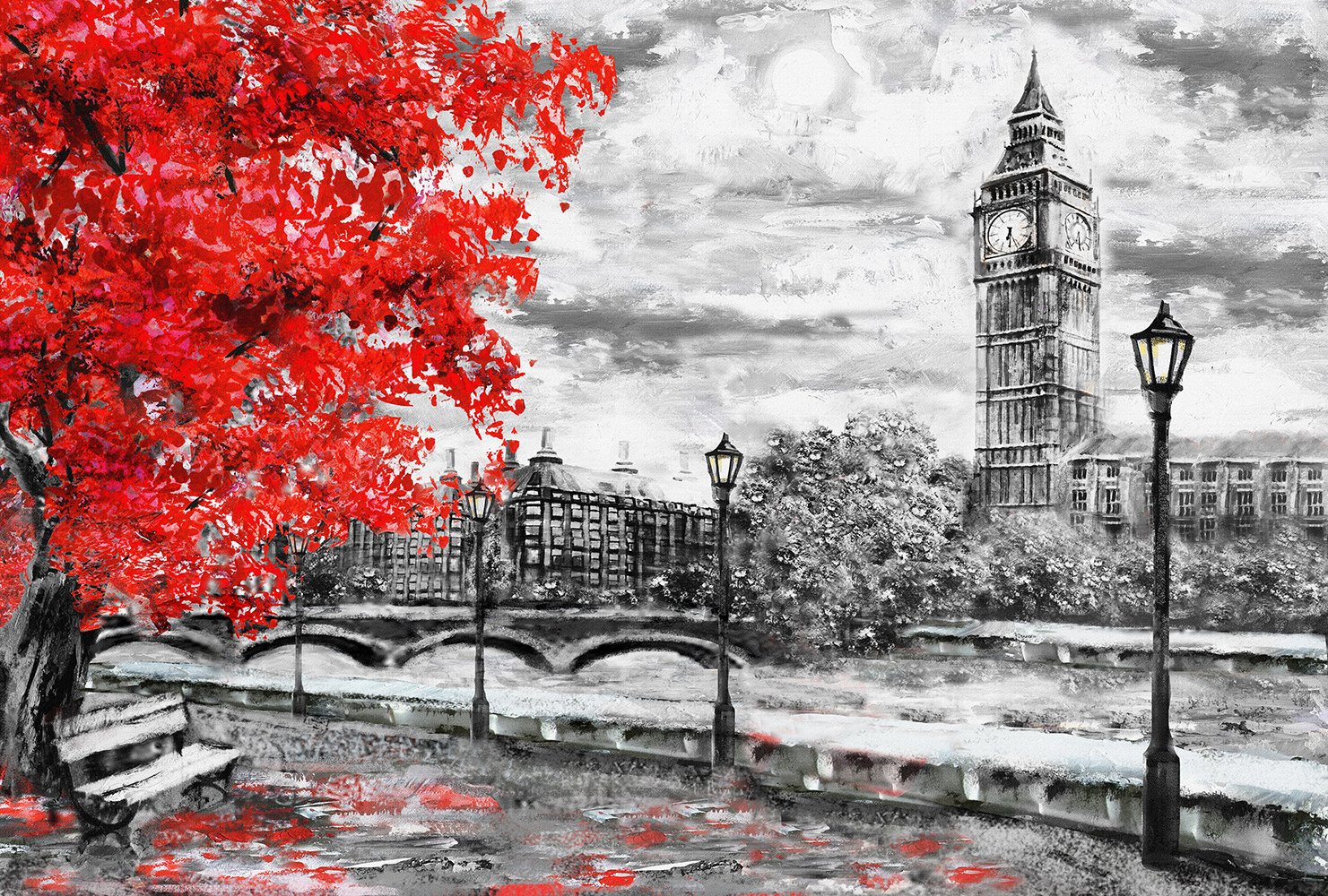 ![Картина черно белая с красным]()