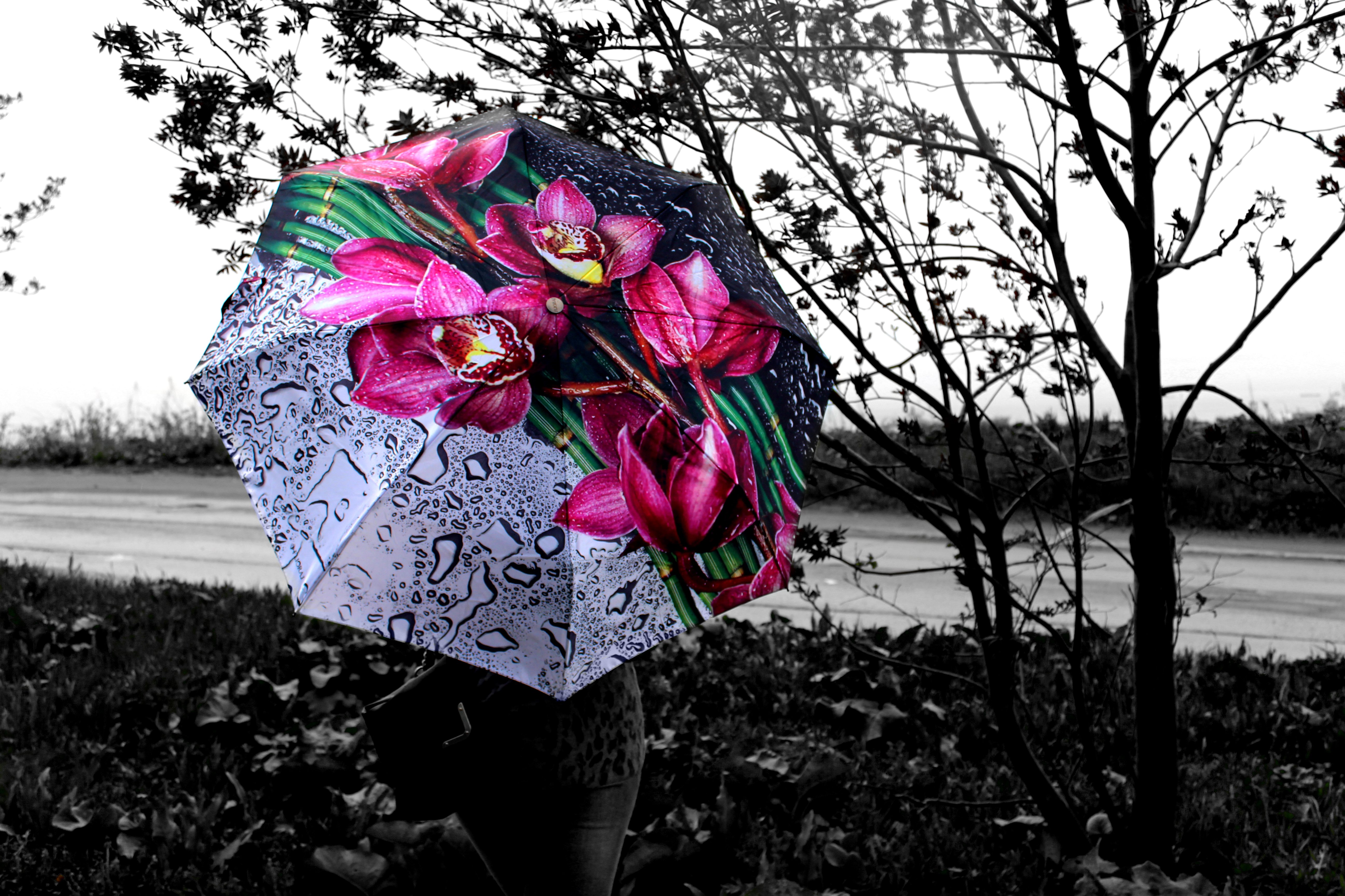 Черно белое с красным зонтом