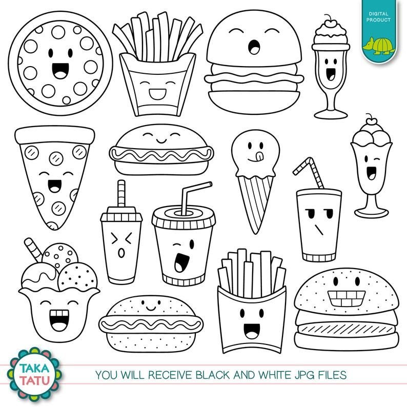 ![Наклейки еда черно белые]()