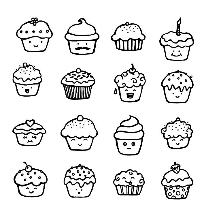 ![Кавайные раскраски кексы]()