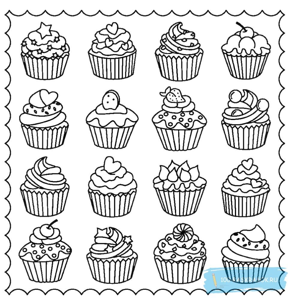 Пирожные раскраска для детей