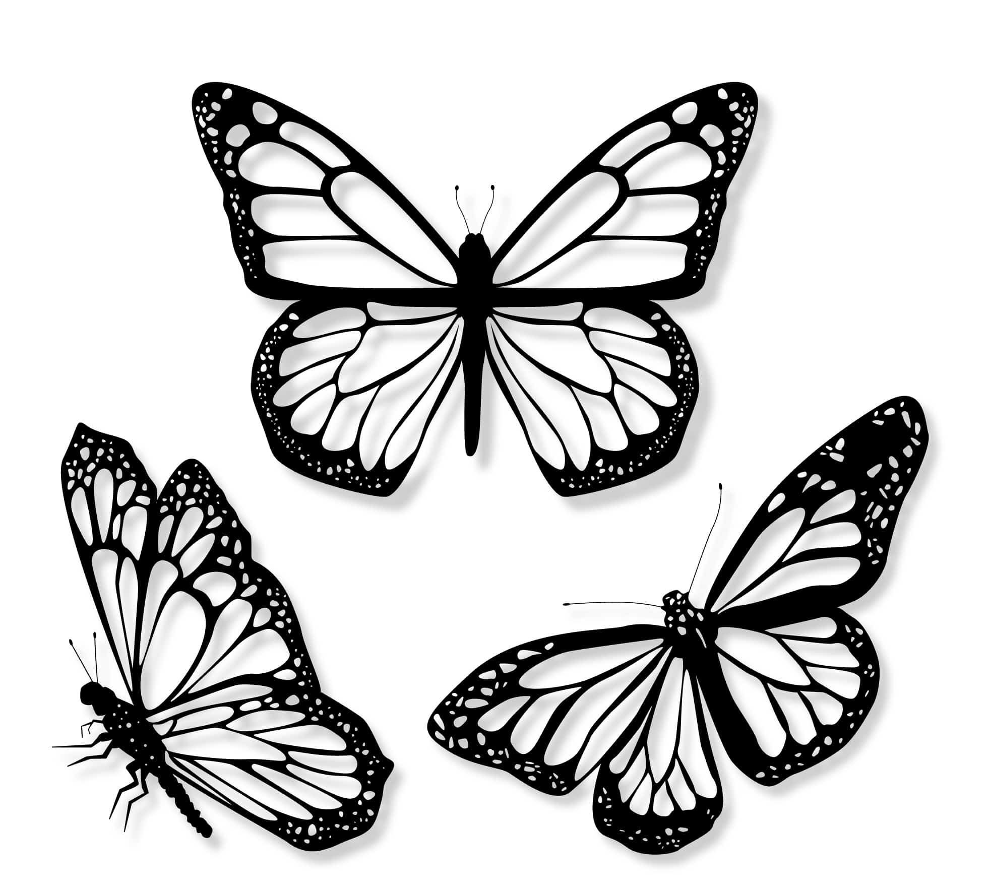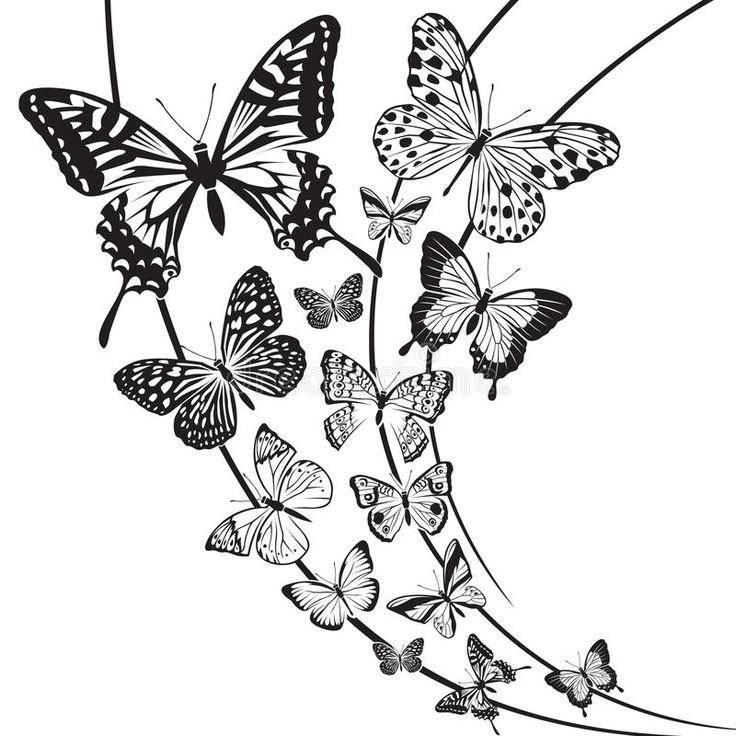бабочки в черно белом цвете рисунок для срисовки