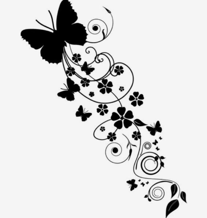 ![Тату бабочка с цветами эскиз]()