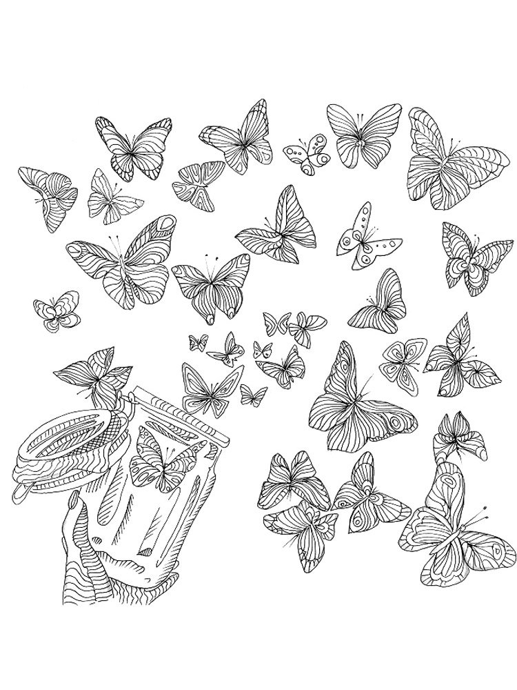 Бабочки раскраска много