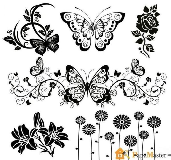 Эскизы цветы бабочки чб
