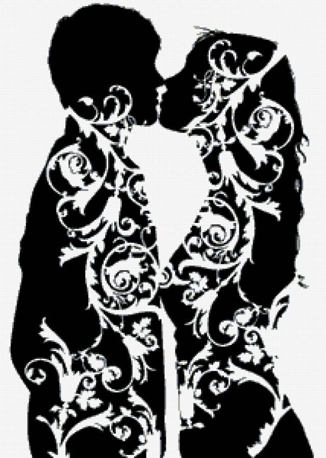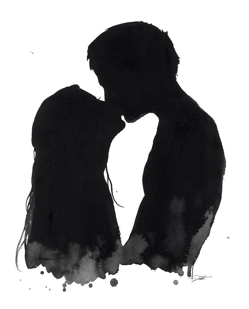 ![Черные силуэты влюбленных]()