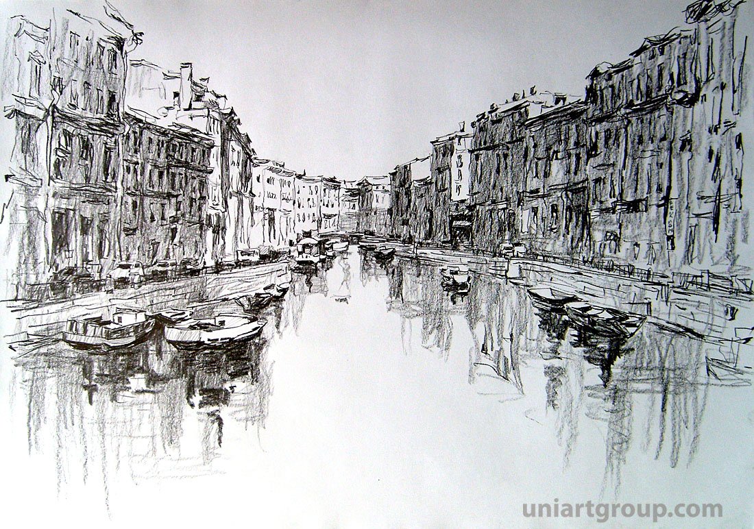 ![Гризайль акварелью городской пейзаж]()