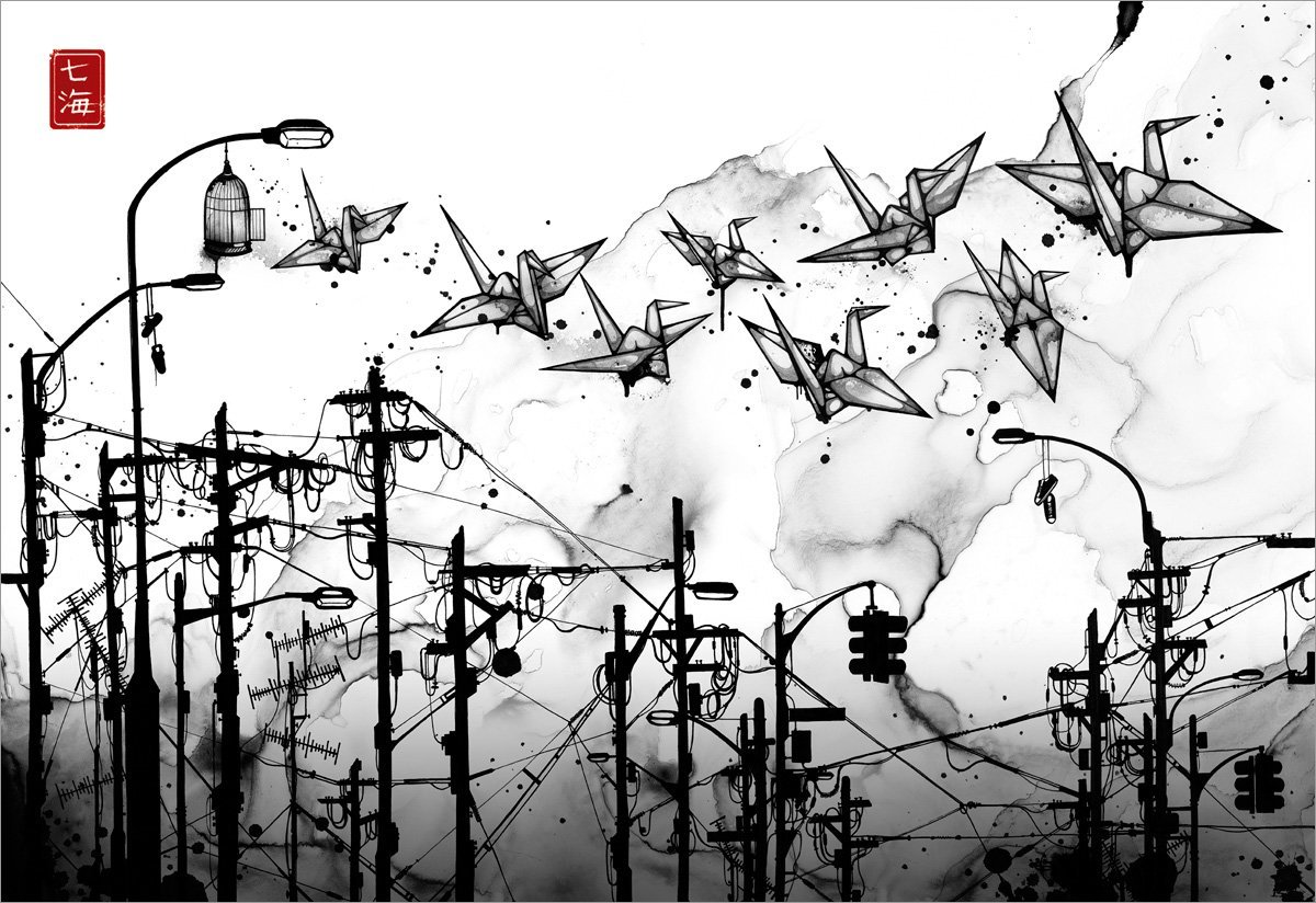 ![Черно белая живопись]()