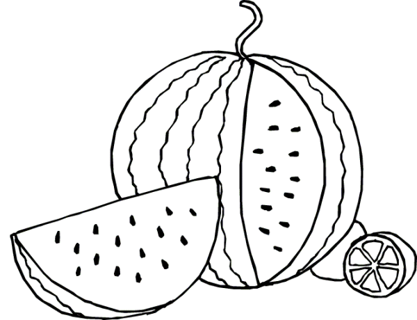 арбуз рисунок черно белый для срисовки