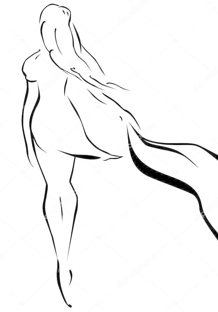 ![Женский силуэт эскиз]()