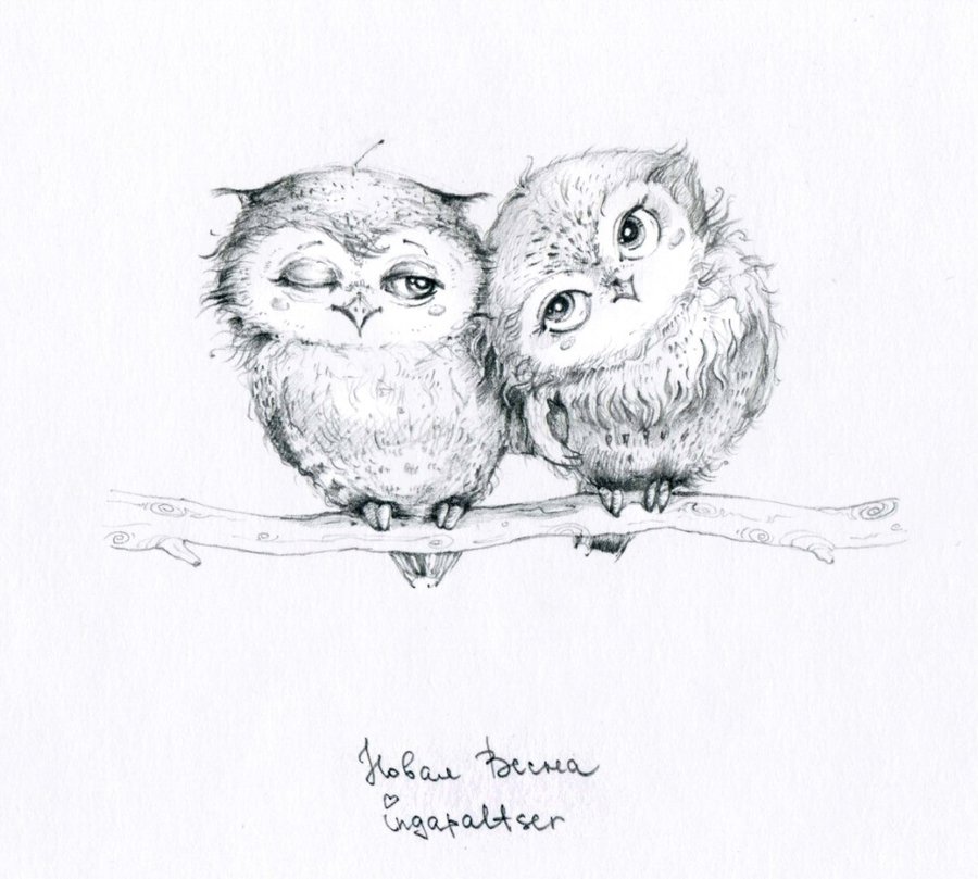 ![Совушки рисунки карандашом]()