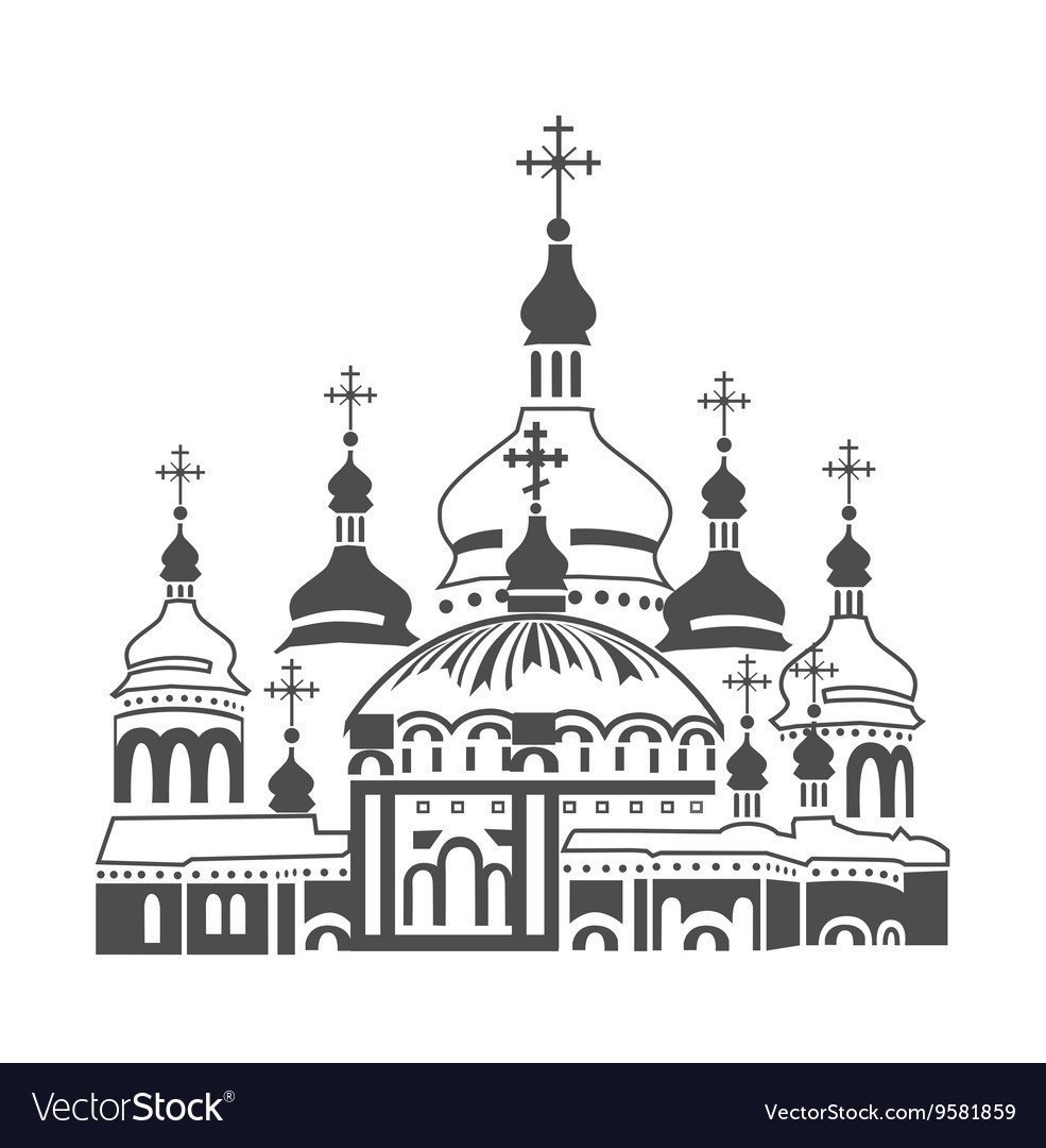![Храм 1 купол православный чб вектор]()