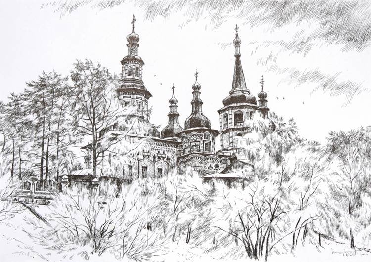 ![Церковь карандашом]()