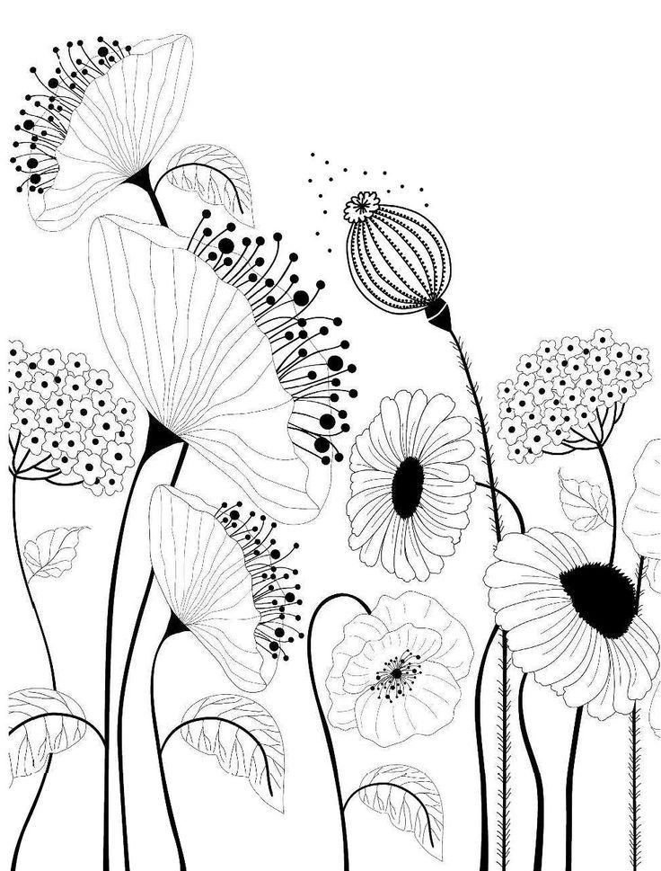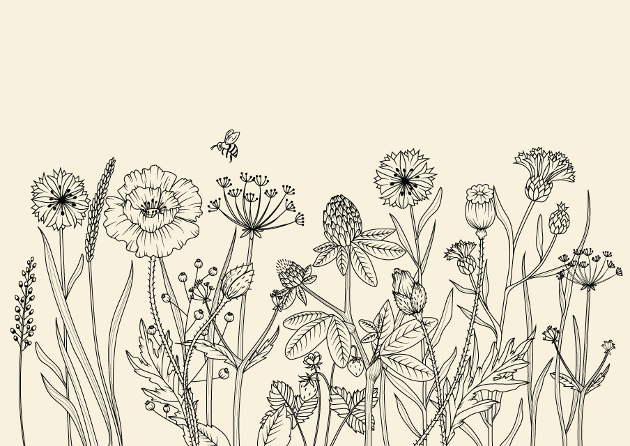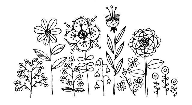 ![Полевые цветы в графике]()