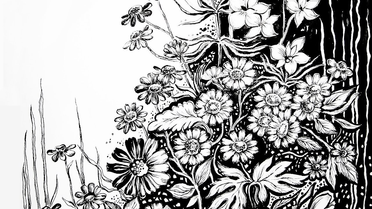 ![Монохромный рисунок цветы]()
