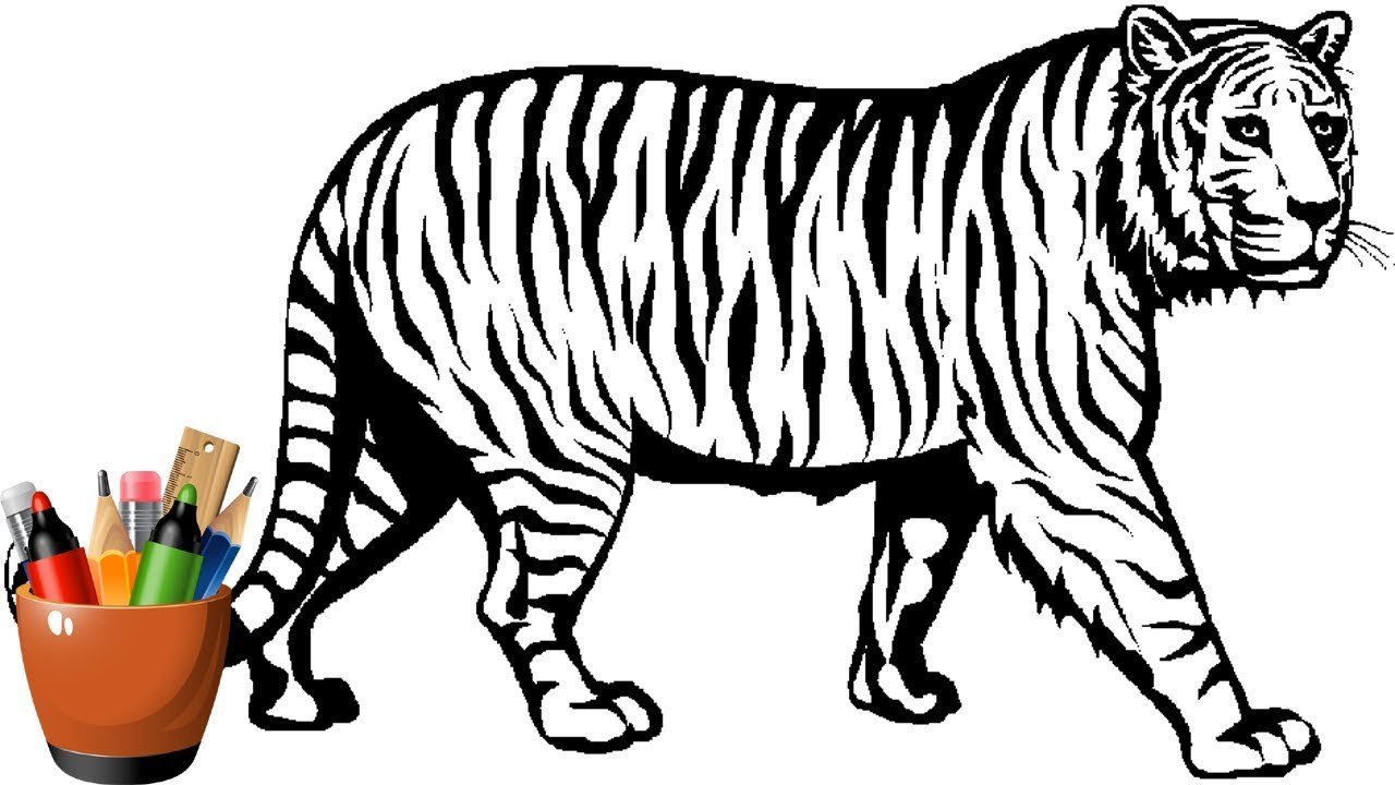 ![Тигр черно белый рисунок для детей (41 фото)]()