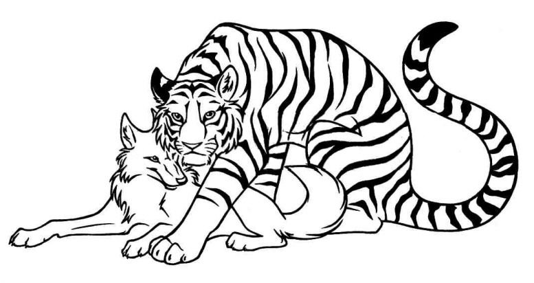 ![Тигр и волк раскраска]()