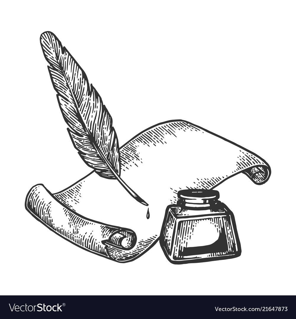 ![Перо и чернильница рисунок]()