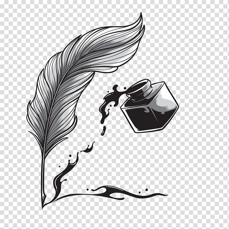 ![Черно белое перо и чернильница]()