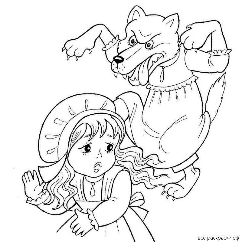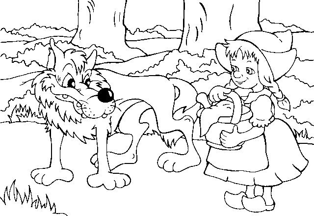 Красная шапочка и волк раскраска