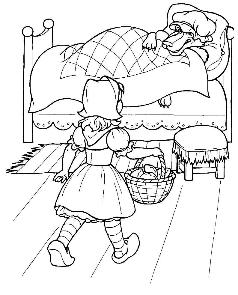 ![Раскраска сказки красная шапочка для детей]()