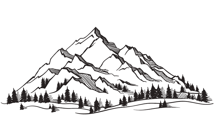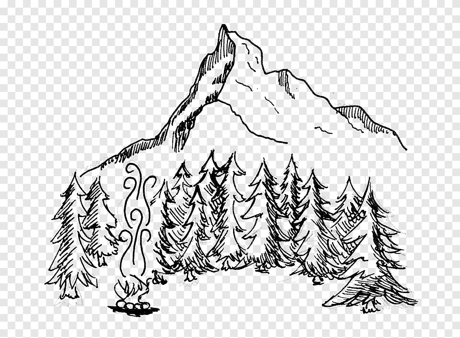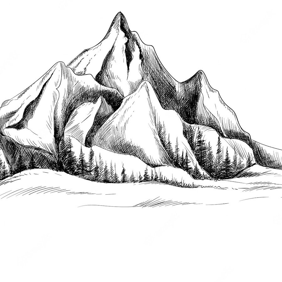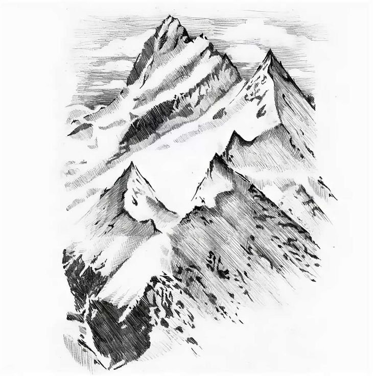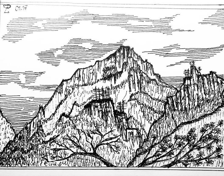 Горы рисунок черно белый