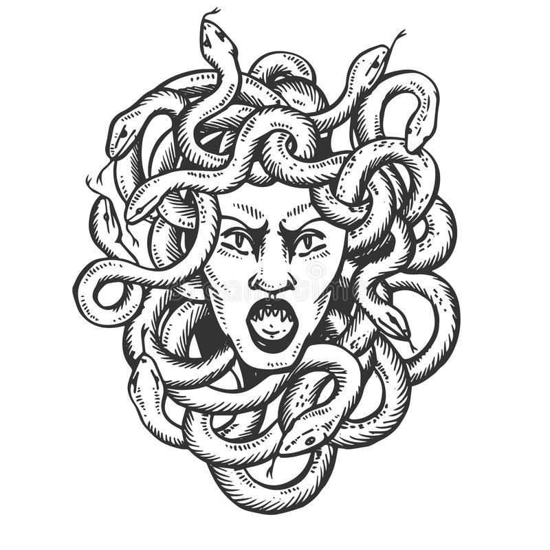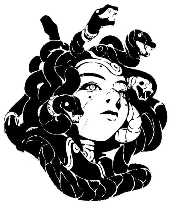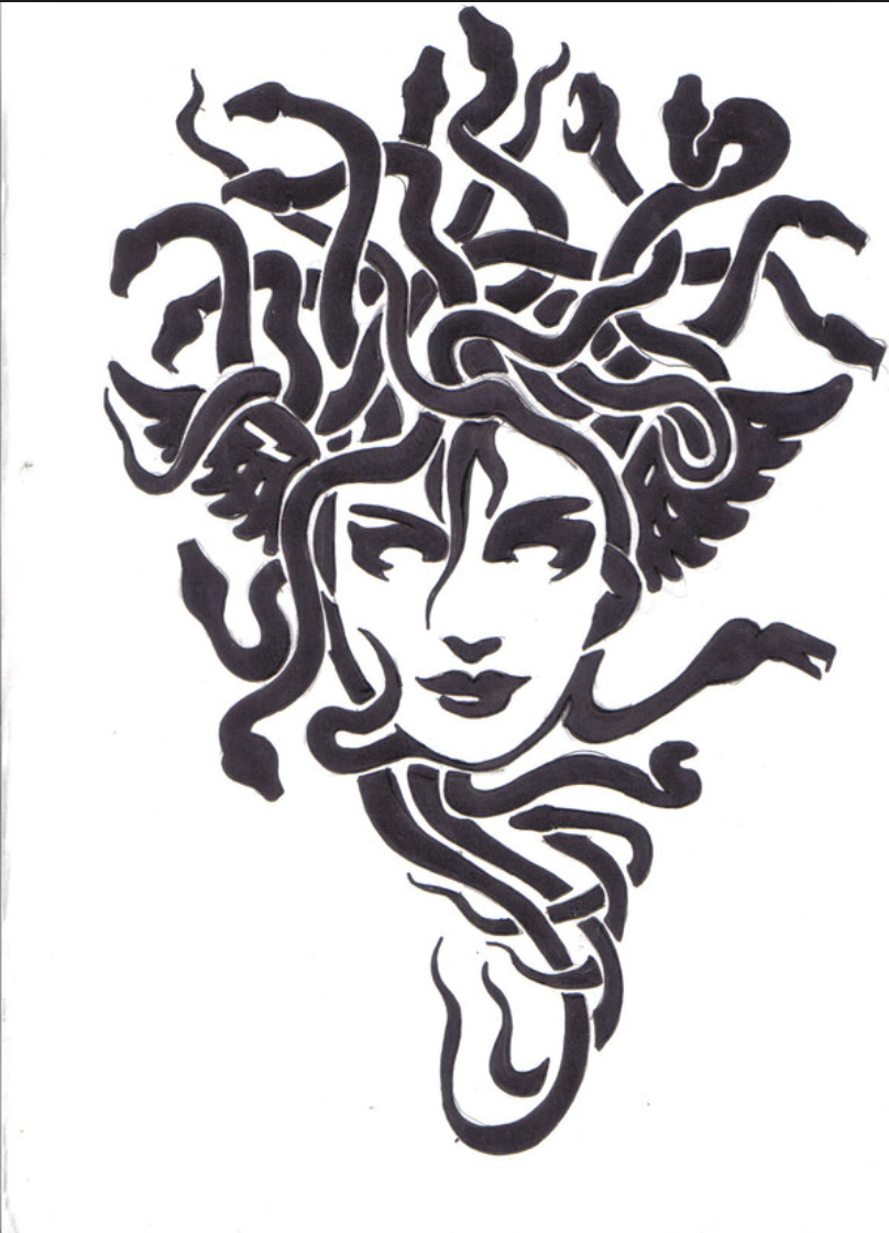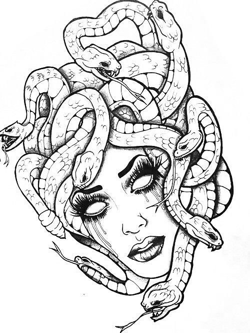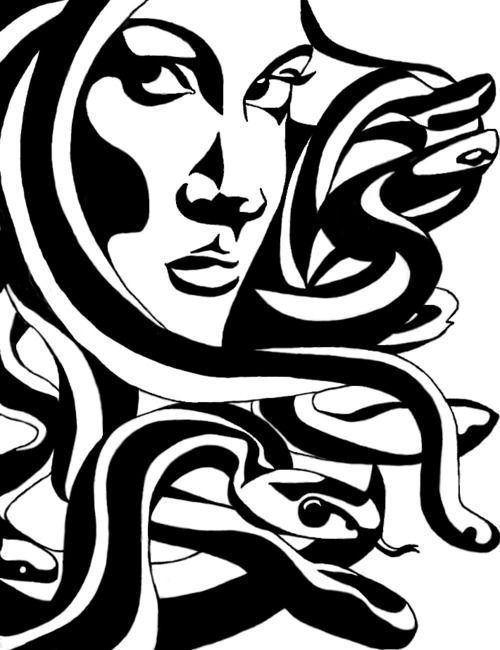 медуза горгона черно белый рисунок для срисовки