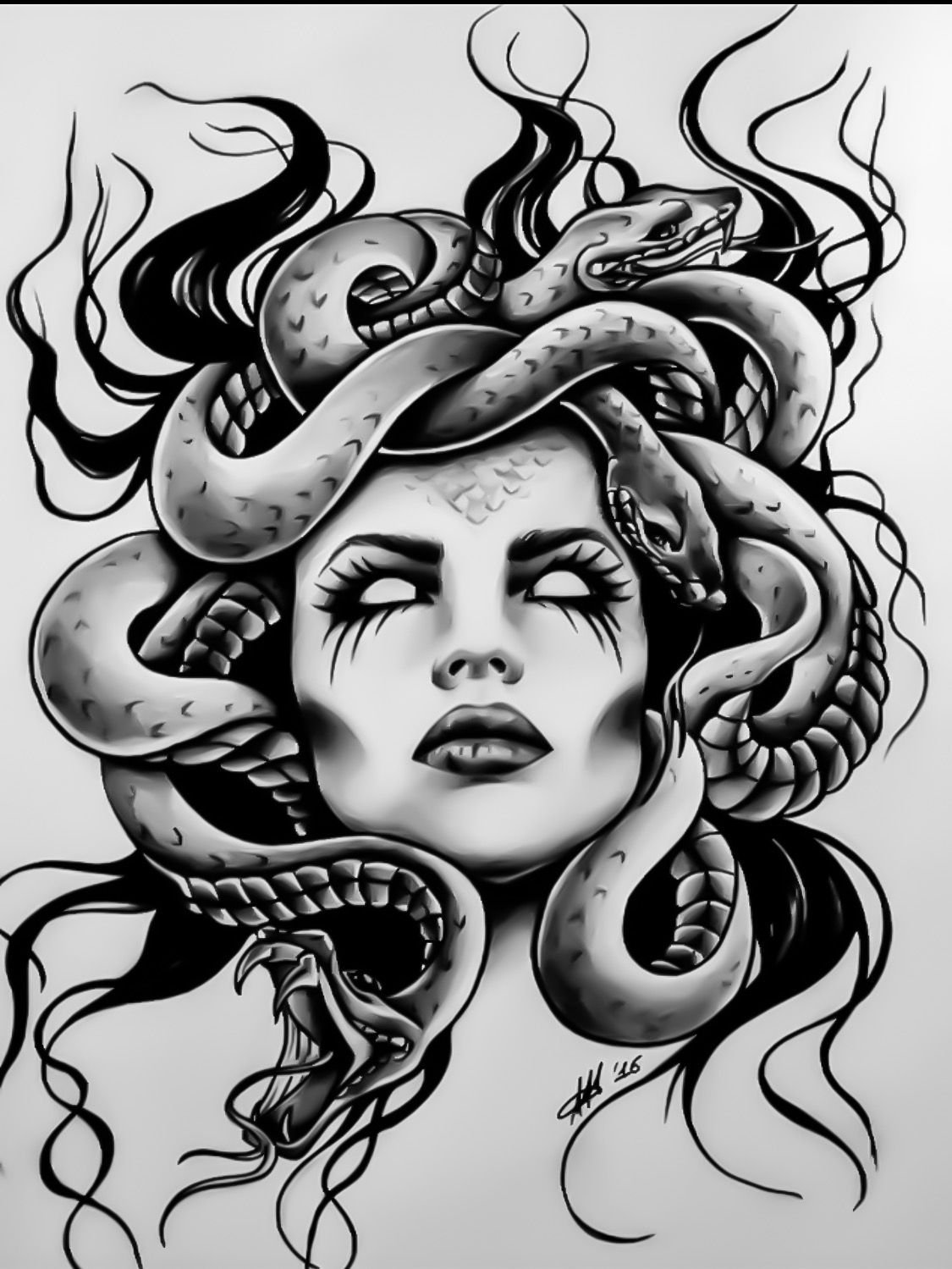 ![Медуза Горгона эскиз тату чб]()