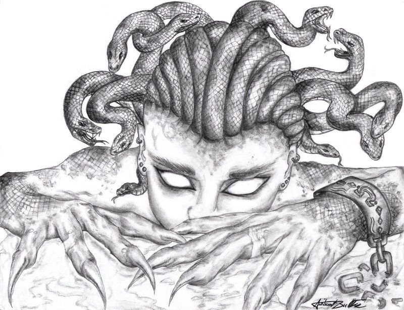 Медуза Горгона рисунок карандашом