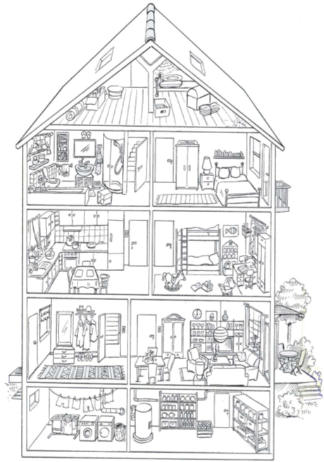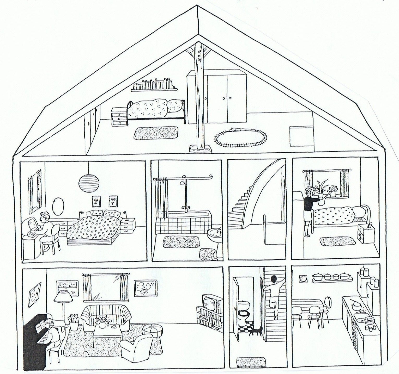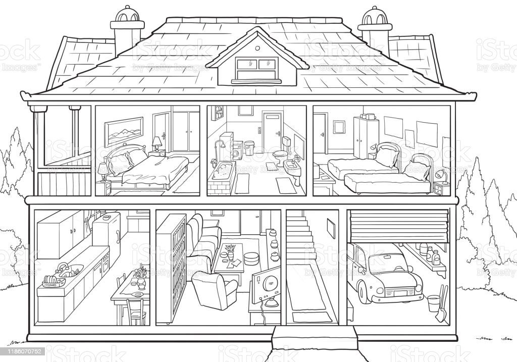 Дом в разрезе - это уникальный и креативный рисунок, который представляет собой изображение дома, разделенного на две части. Одна часть рисунка показывает внешний вид дома, а другая - его внутреннее пространство. Такой подход создает интересный эффект глубины и позволяет рассмотреть как внешнюю, так и внутреннюю архитектуру здания. Черно-белая цветовая гамма придает этому рисунку особую стилистику и визуальное выражение. Будь то реалистический или стилизованный рисунок, дом в разрезе черно-белого цвета будет привлекать внимание своей оригинальностью и необычностью.