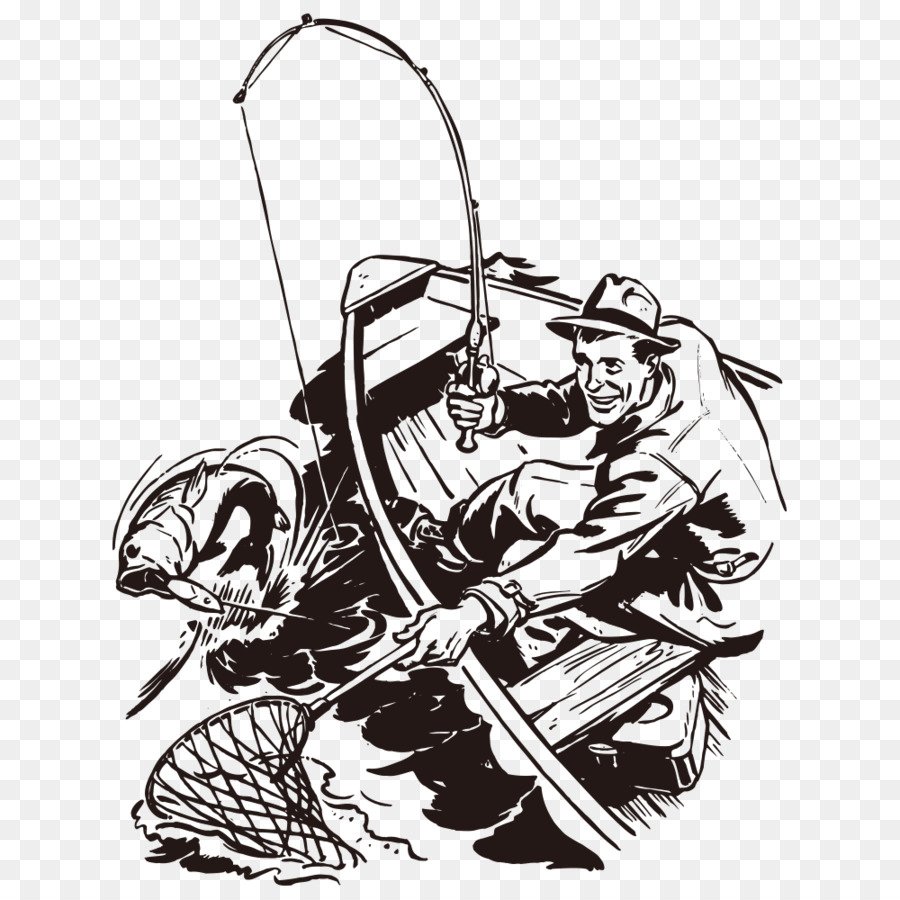 черно белый рисунок рыбака для срисовки