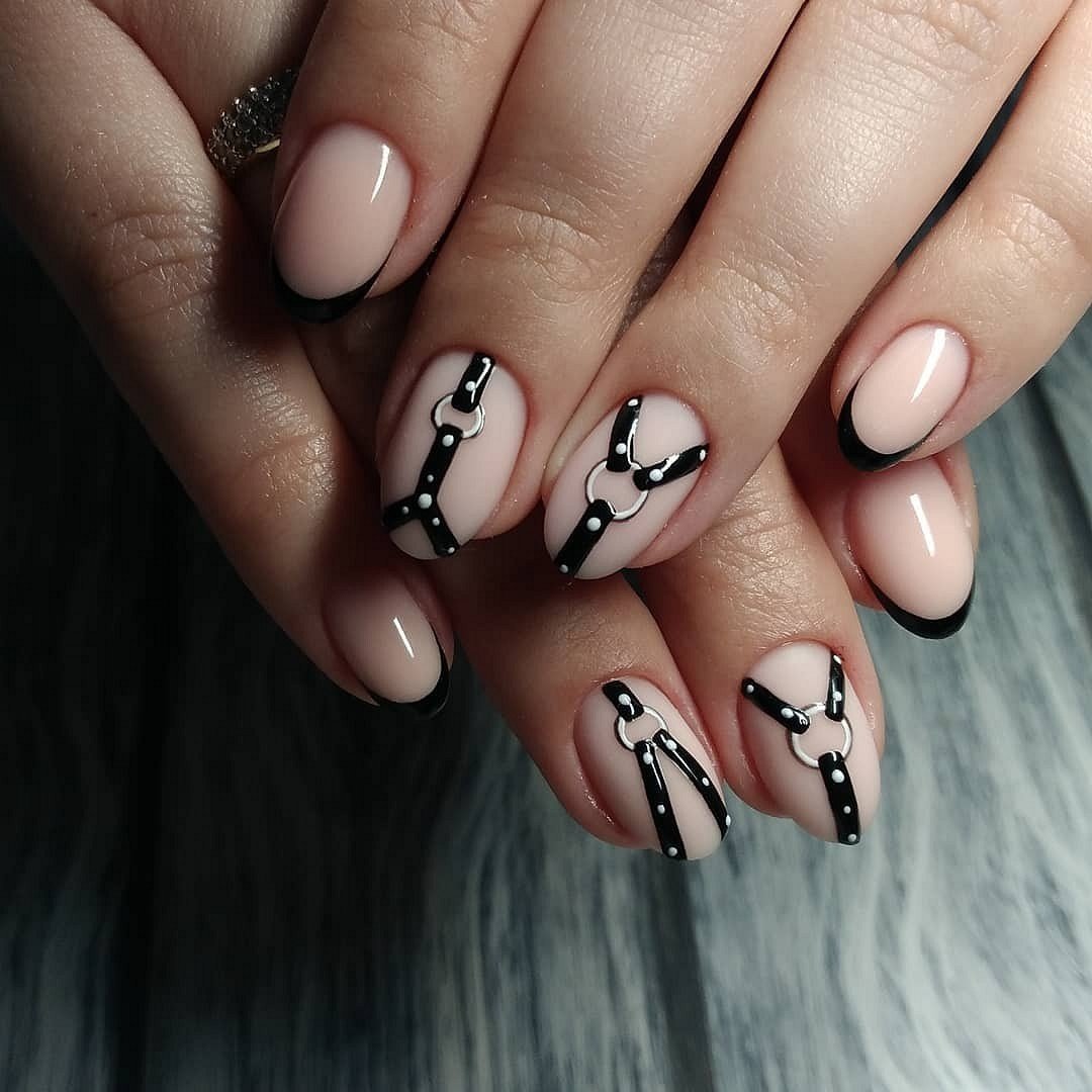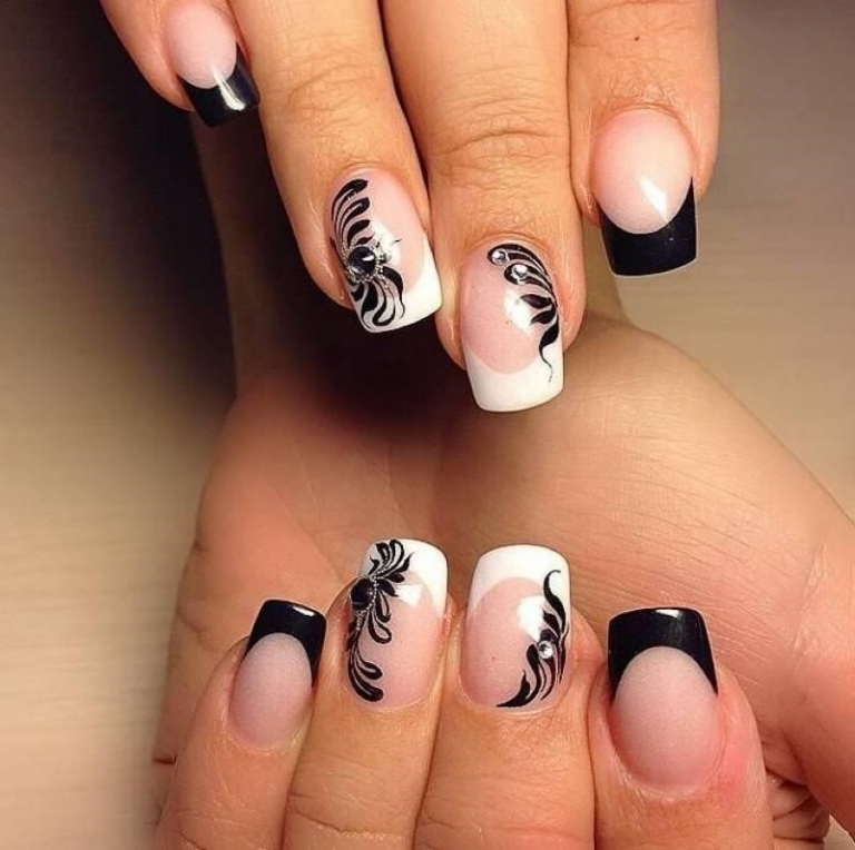 Французский маникюр с черным рисунком