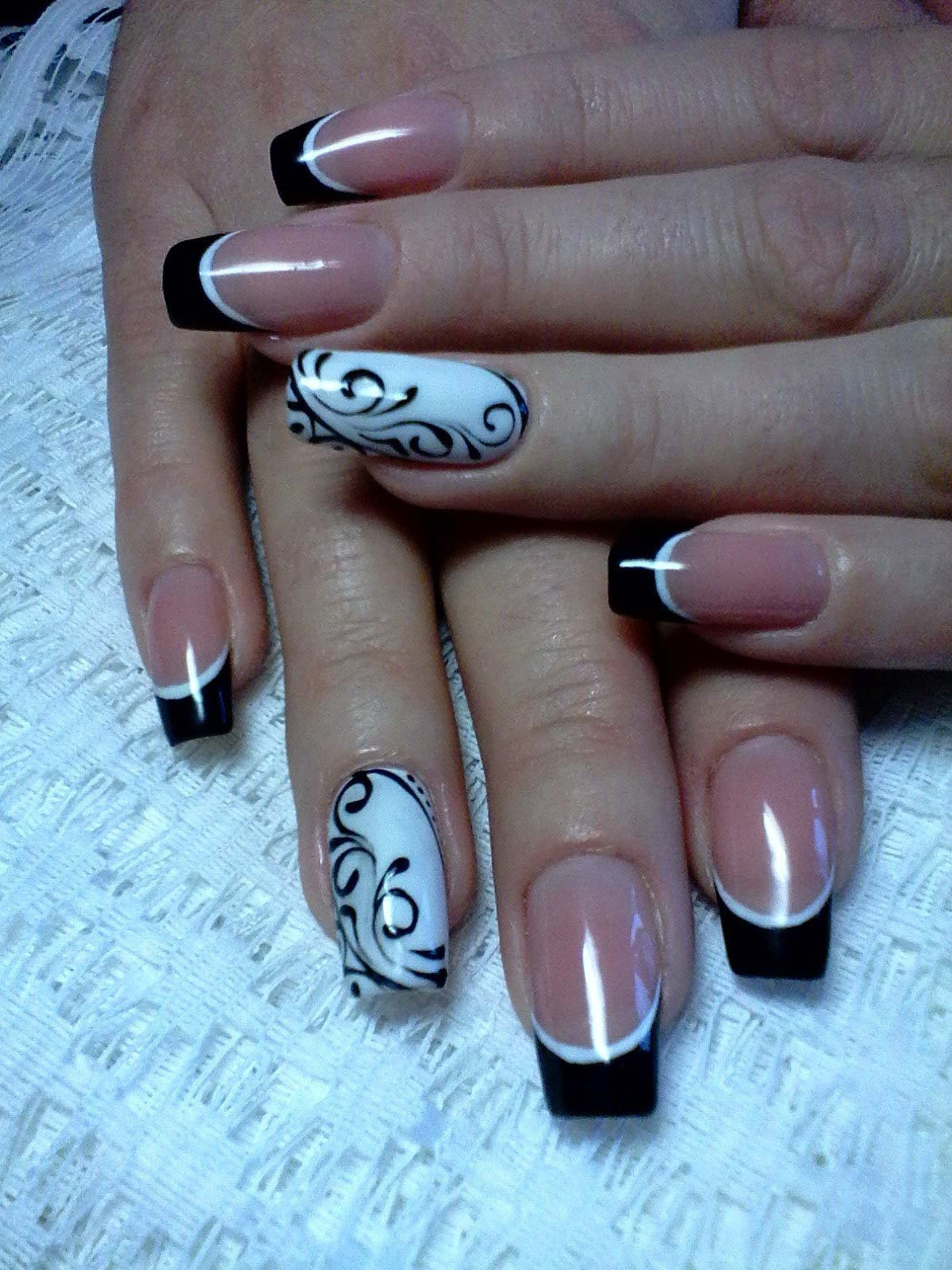 Черно белый маникюр с рисунком