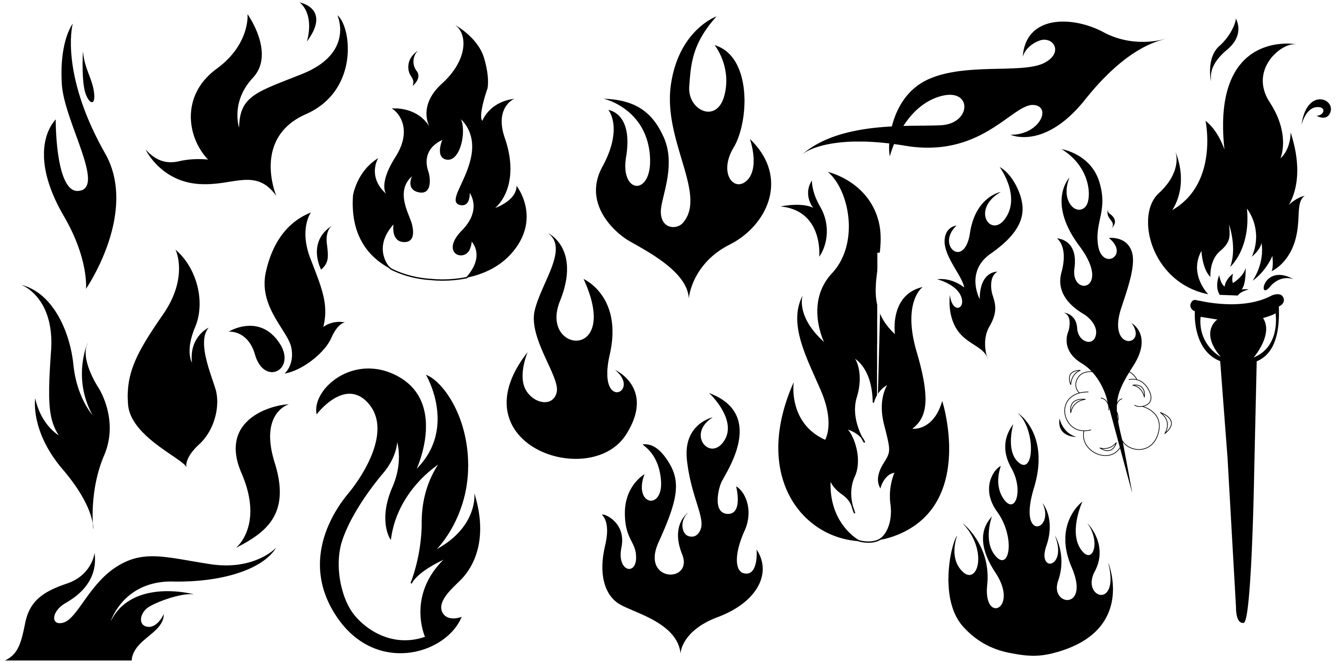 языки пламени рисунок черно белый для срисовки