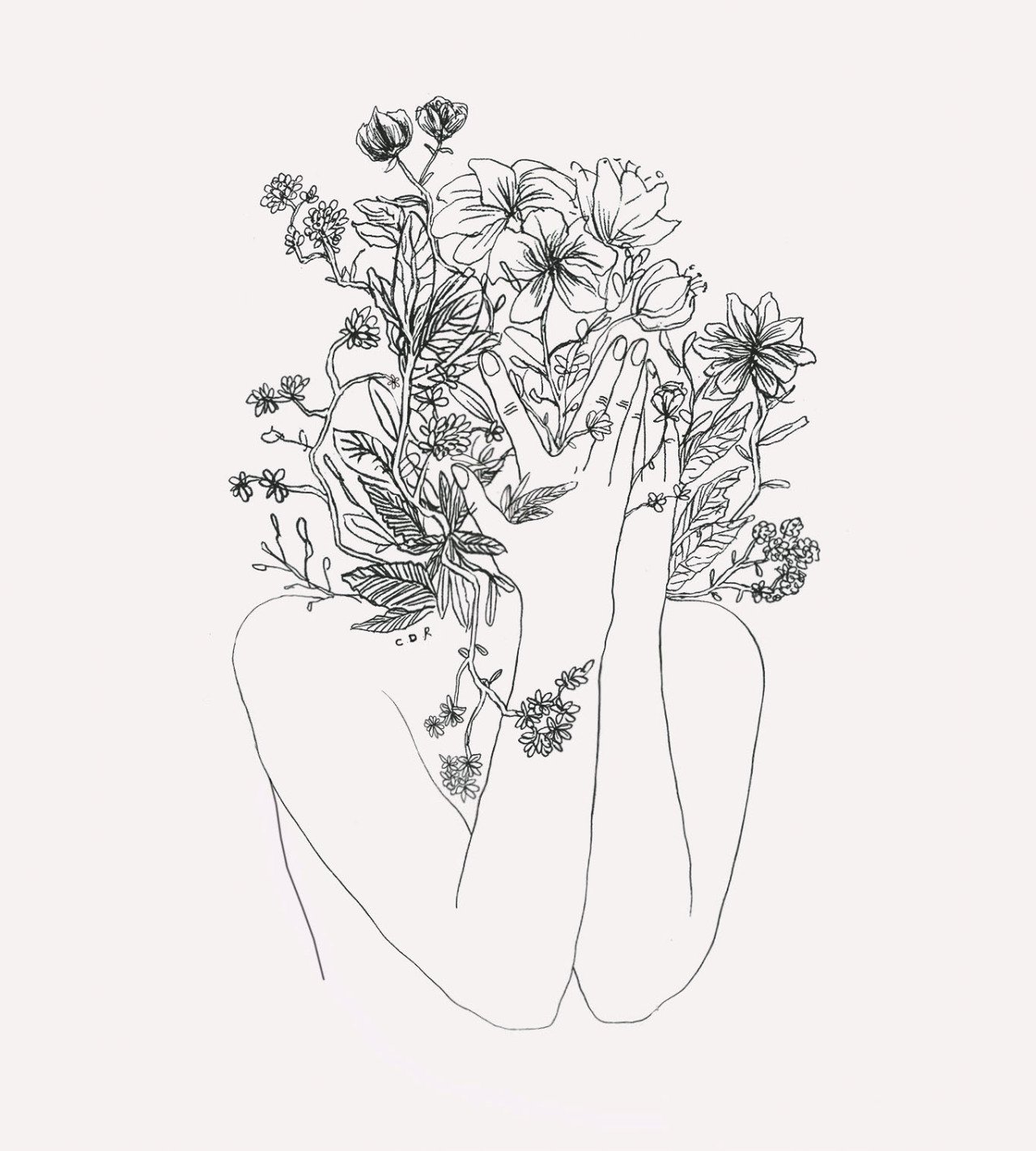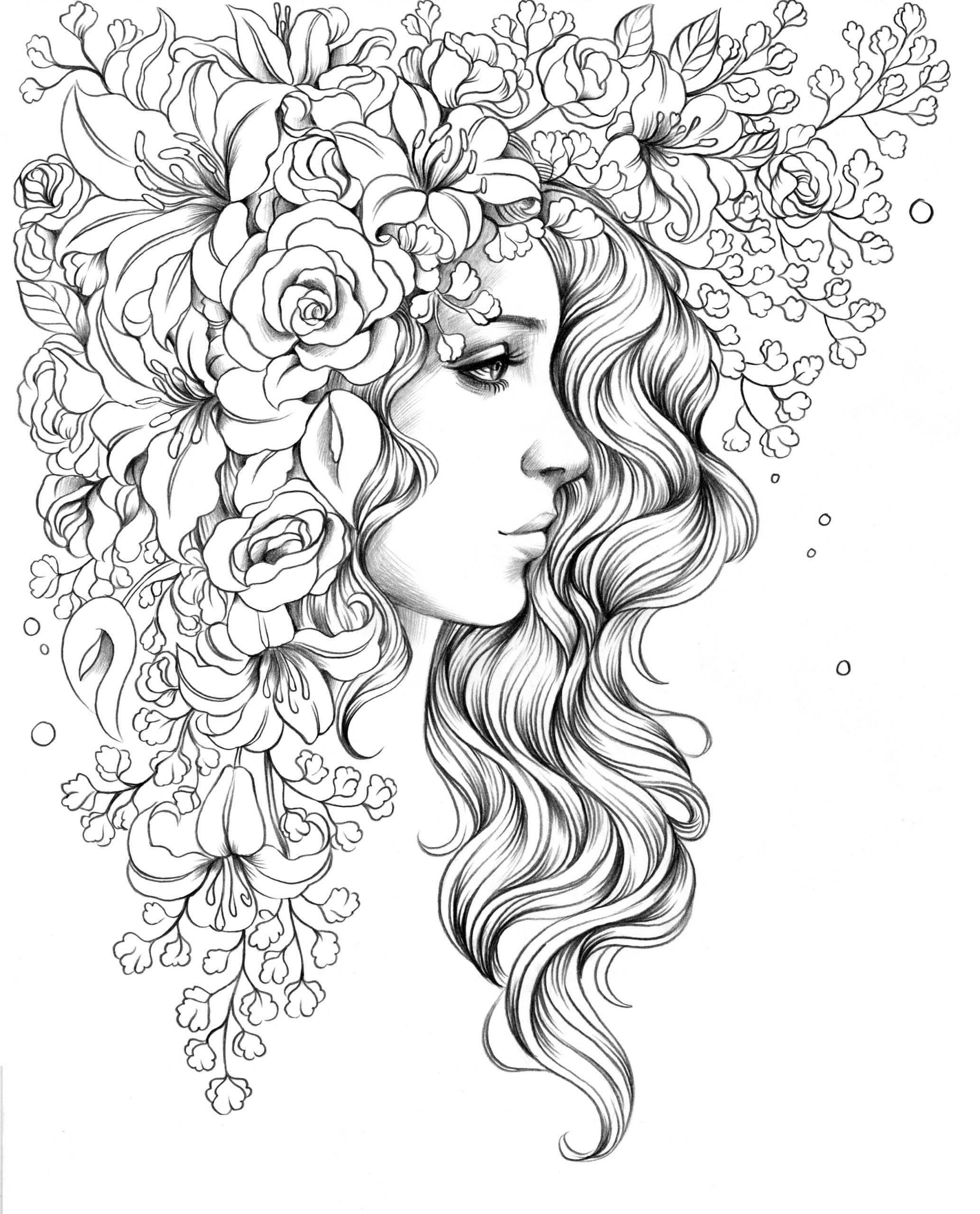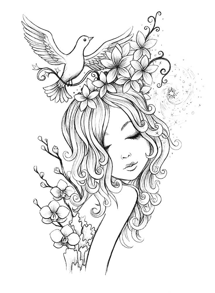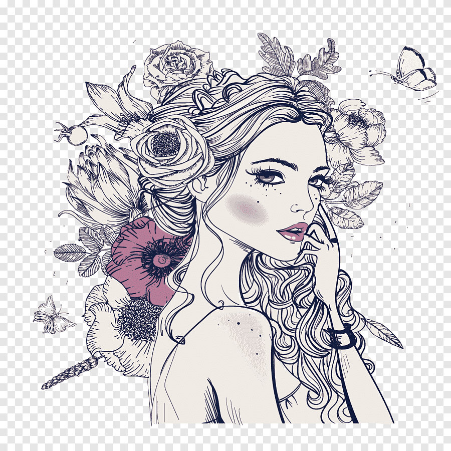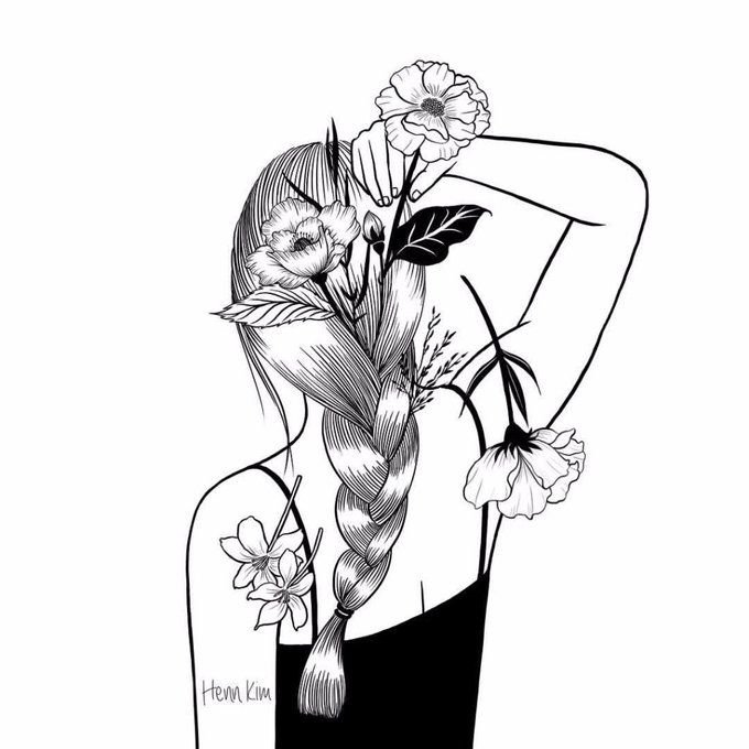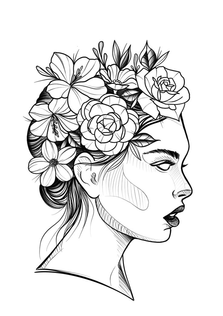 черно белый рисунок девушки с цветами для срисовки
