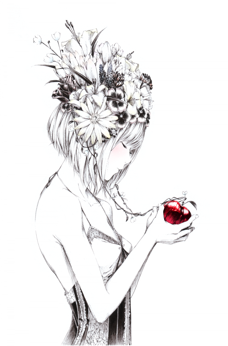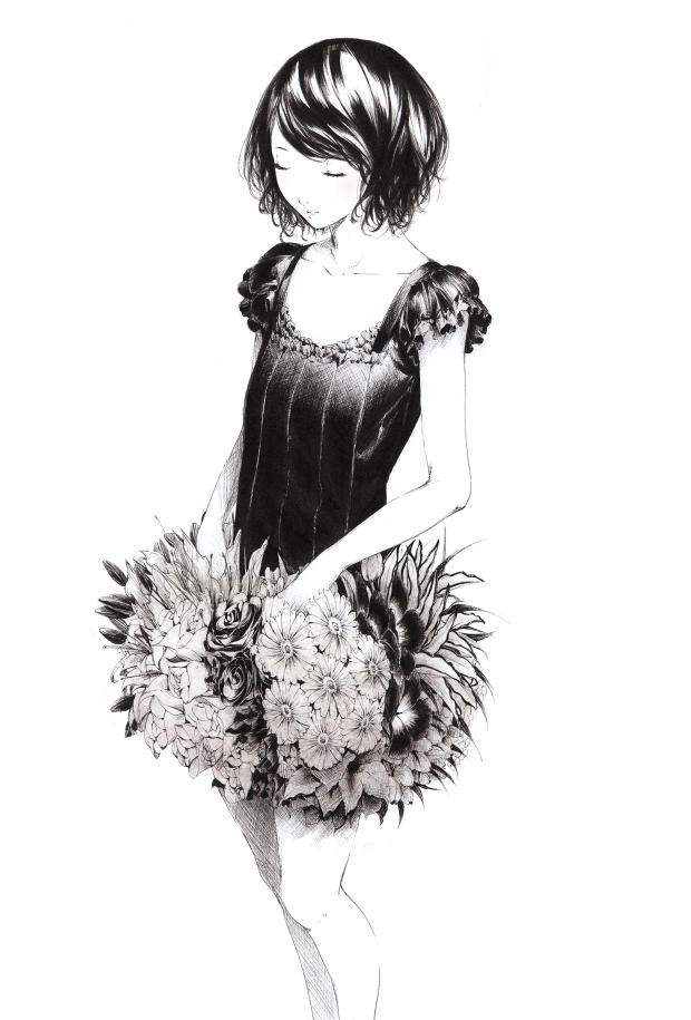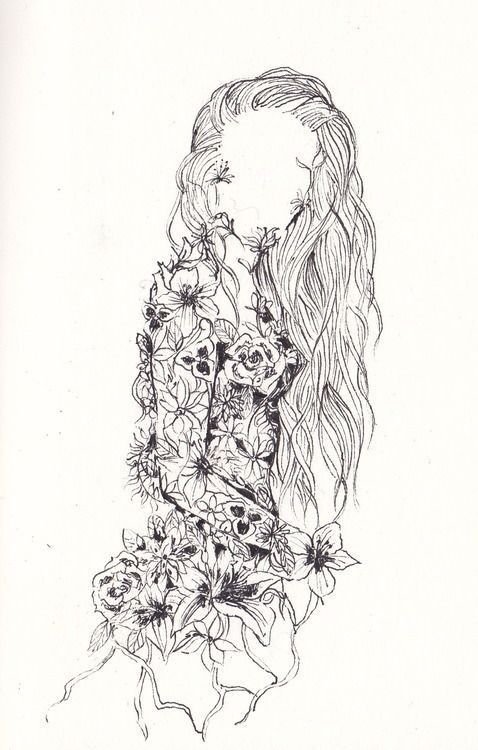 ![Девушка с цветами эскиз]()