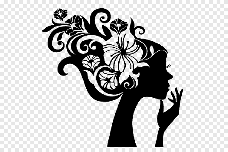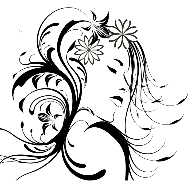 ![Контурный силуэт девушки с цветком в волосах]()