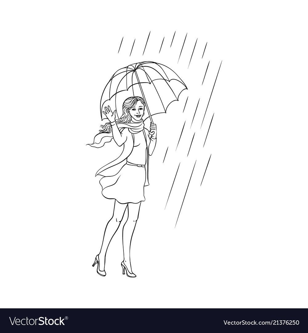 ![Девушка с зонтом рисунок]()
