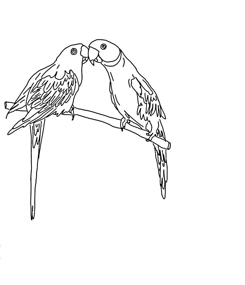 ![Ожереловый попугай раскраска]()
